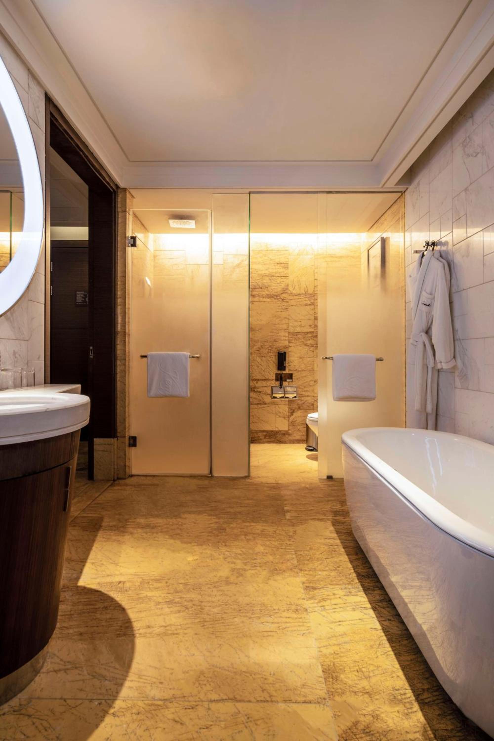 Location convenient for taxi/ride-hailing. About 20 small restaurants including a luckin coffee n kfc at walking distance. Very clean but shower floor tends to pool water near the door. Fluffy bathrobes, plenty of storage, glassware and good desk lamp. But odd light system requiring patience to click through to the setting desired. Room. Service on wechat mini program keeps defaulting ro ads. Good sized gym and pool, but sauna,steam room and plunge pool on low energy saving mode. Staff were polite and helpful. Food at the German bistro was good despite low season.