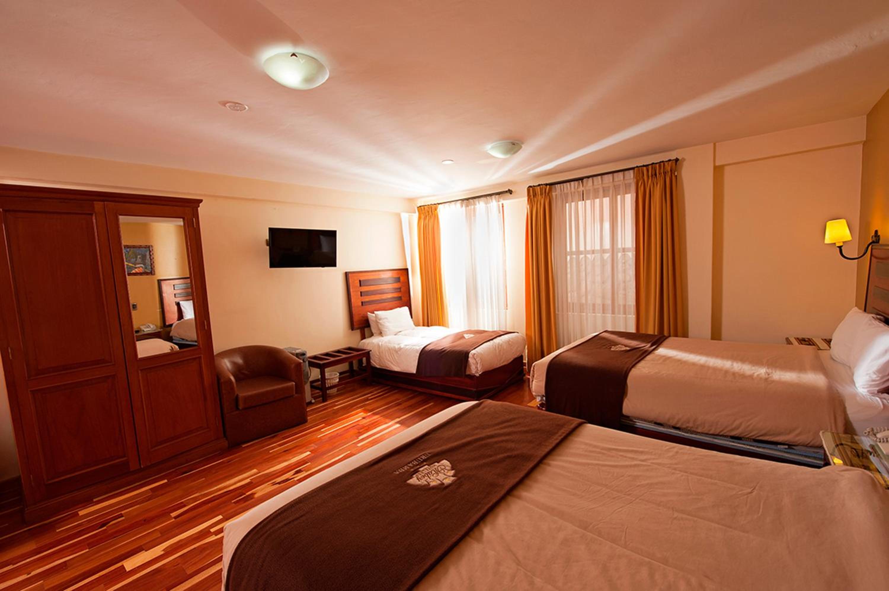 Nice, large room, large bathtub with plenty of hot water. Easy walk into town and the excellent restaurant El Huacatay in easy walking distance. Aging buildings, but nice wood floors. Noise from upper floor for rooms on ground floor as well as road noise. Some electrical outlets were so used that plugs didn't stay in. Small grocery shops less than 100m away. Good choice for Sacred Valley. Our day trip to Machu Picchu left early, so they started breakfast earlier for us. No mini fridge