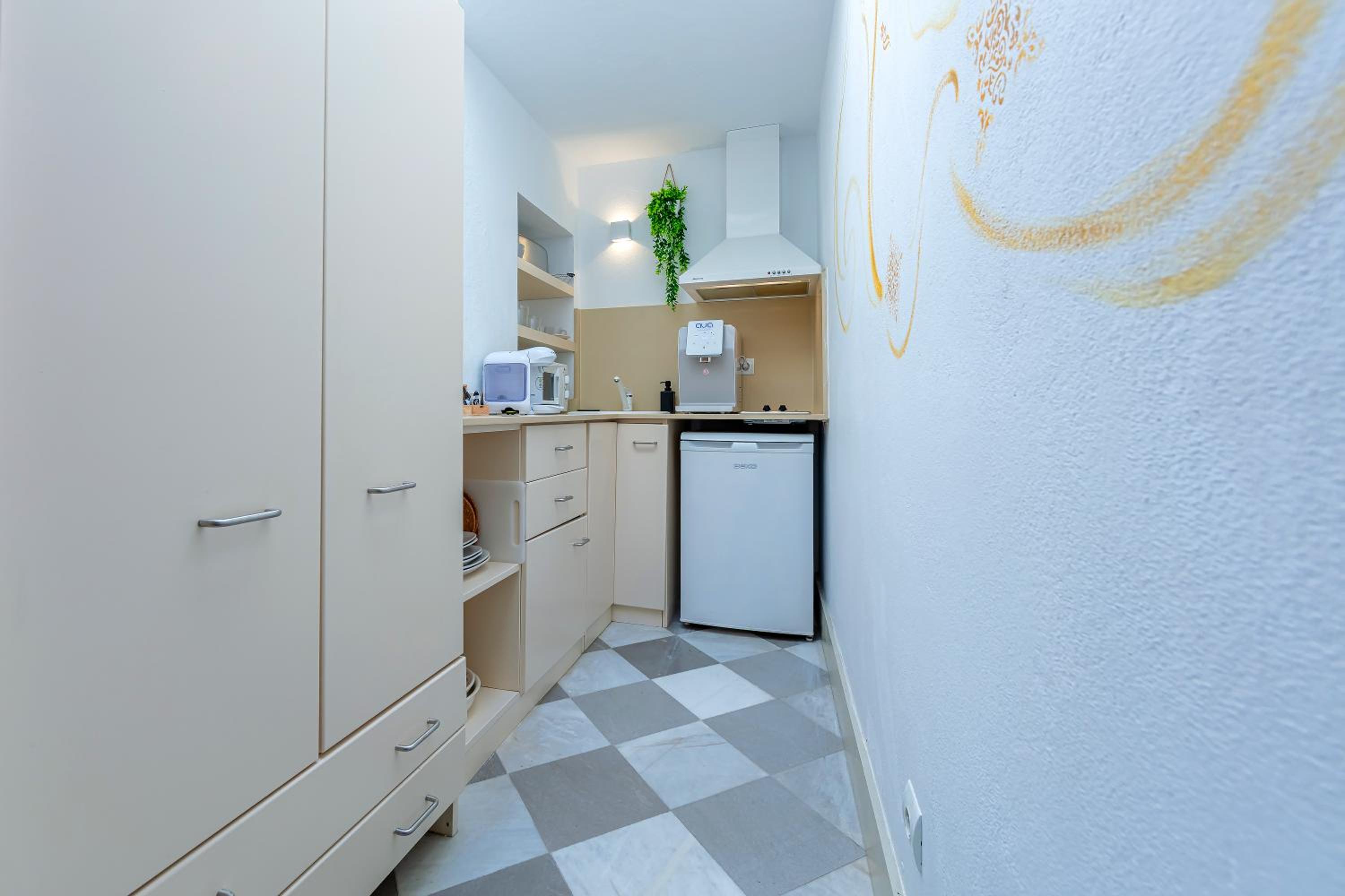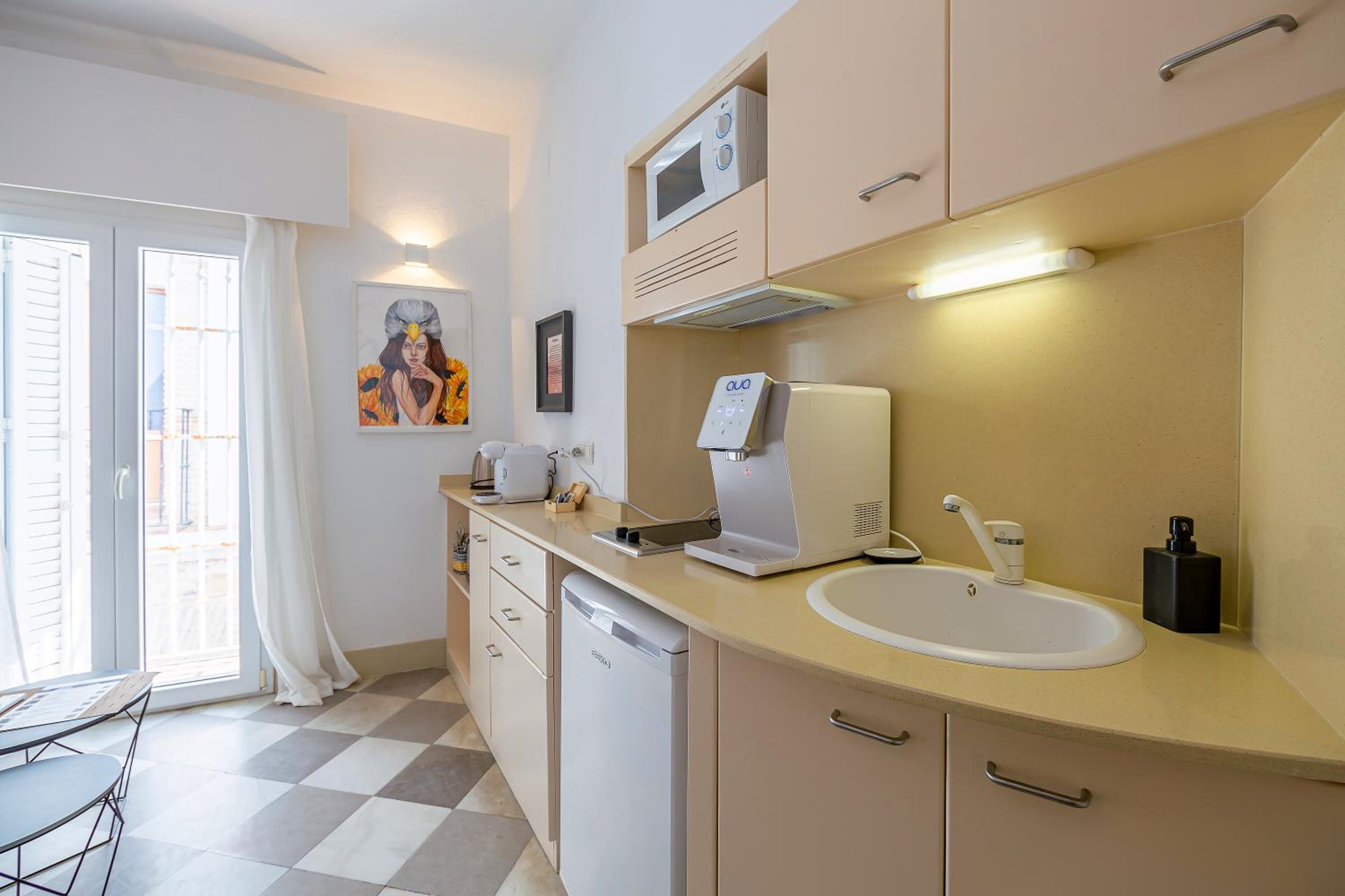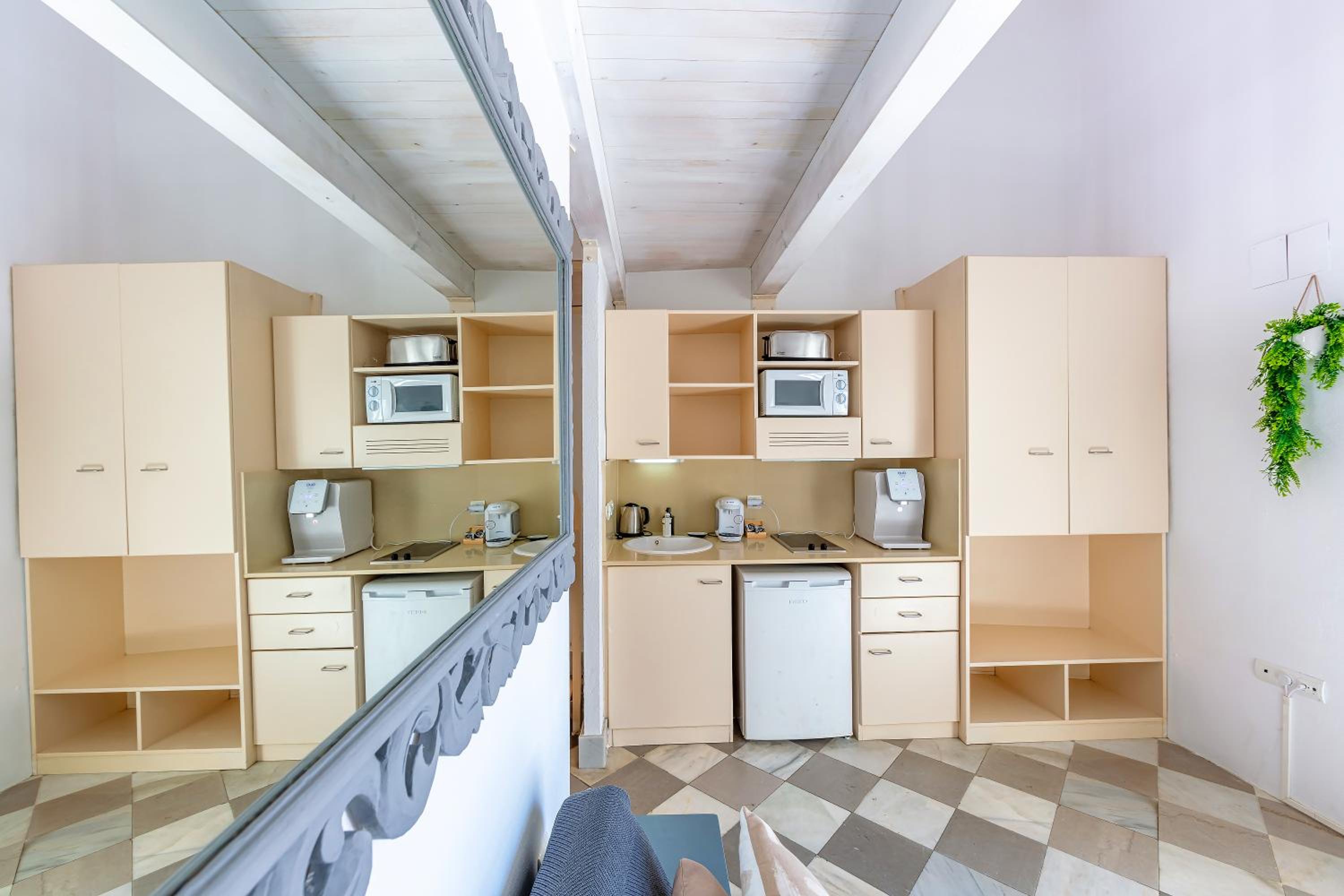 El menaje de cocina es muy pobre y tiene bastante tiempo, es difícil que haya dos vasos iguales, no es un problema pero son apartamentos preciosos y muy cuidados, sería genial que también pusieran atención al detalle de mejorar cosas como el menaje, que te puedes apañar para cocinar algo sencillo pero los apartamentos son tan estupendos, que ver ese menaje, es contradictorio con el resto de servicios.