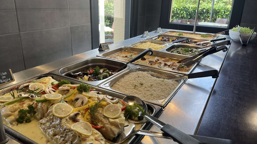 Savor exquisite meals at our on-site Restaurant Kyriad or opt for the convenience of room service. Start your day with a sumptuous buffet breakfast and enjoy a variety of beverages at our bar/lounge.