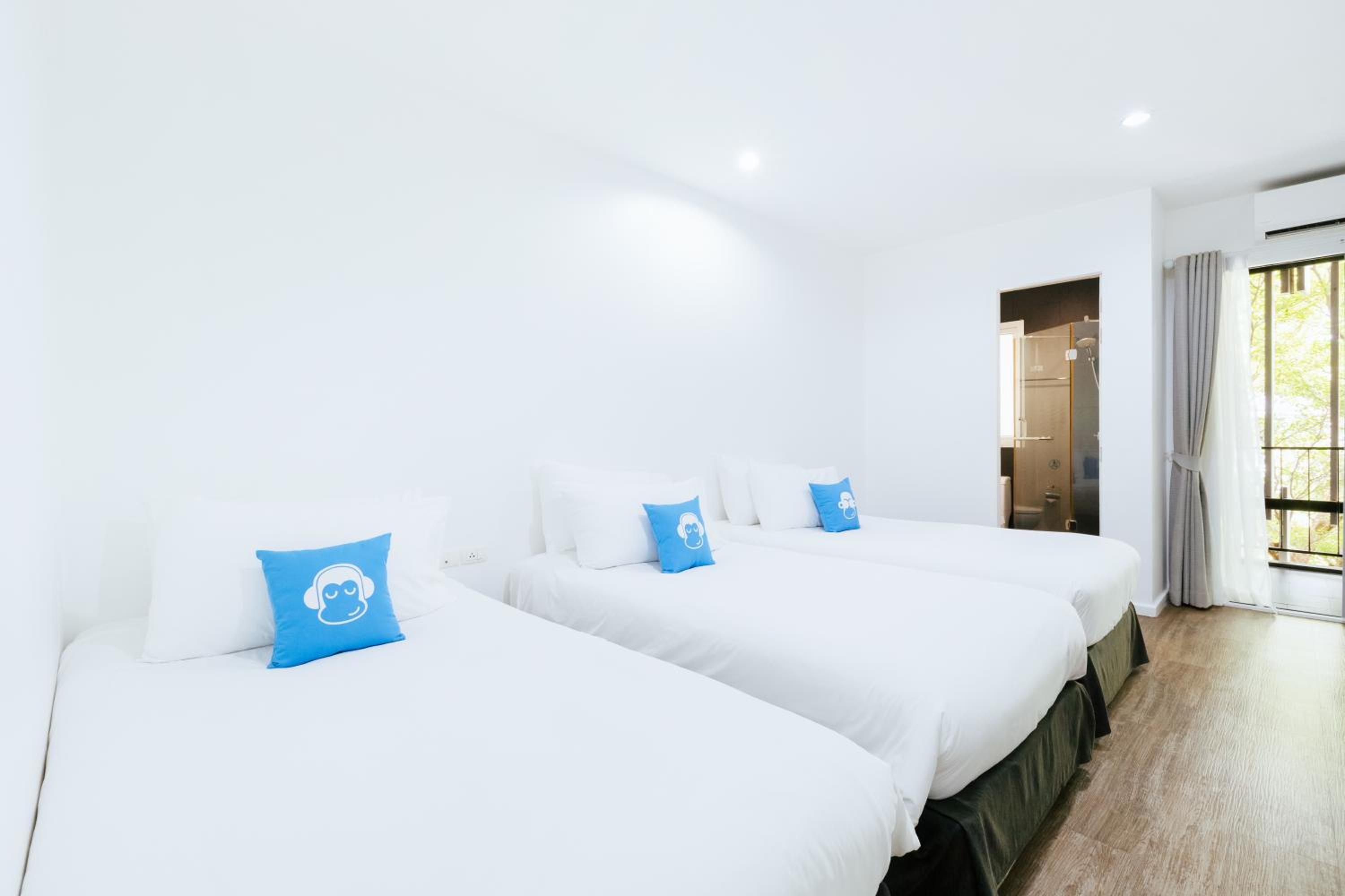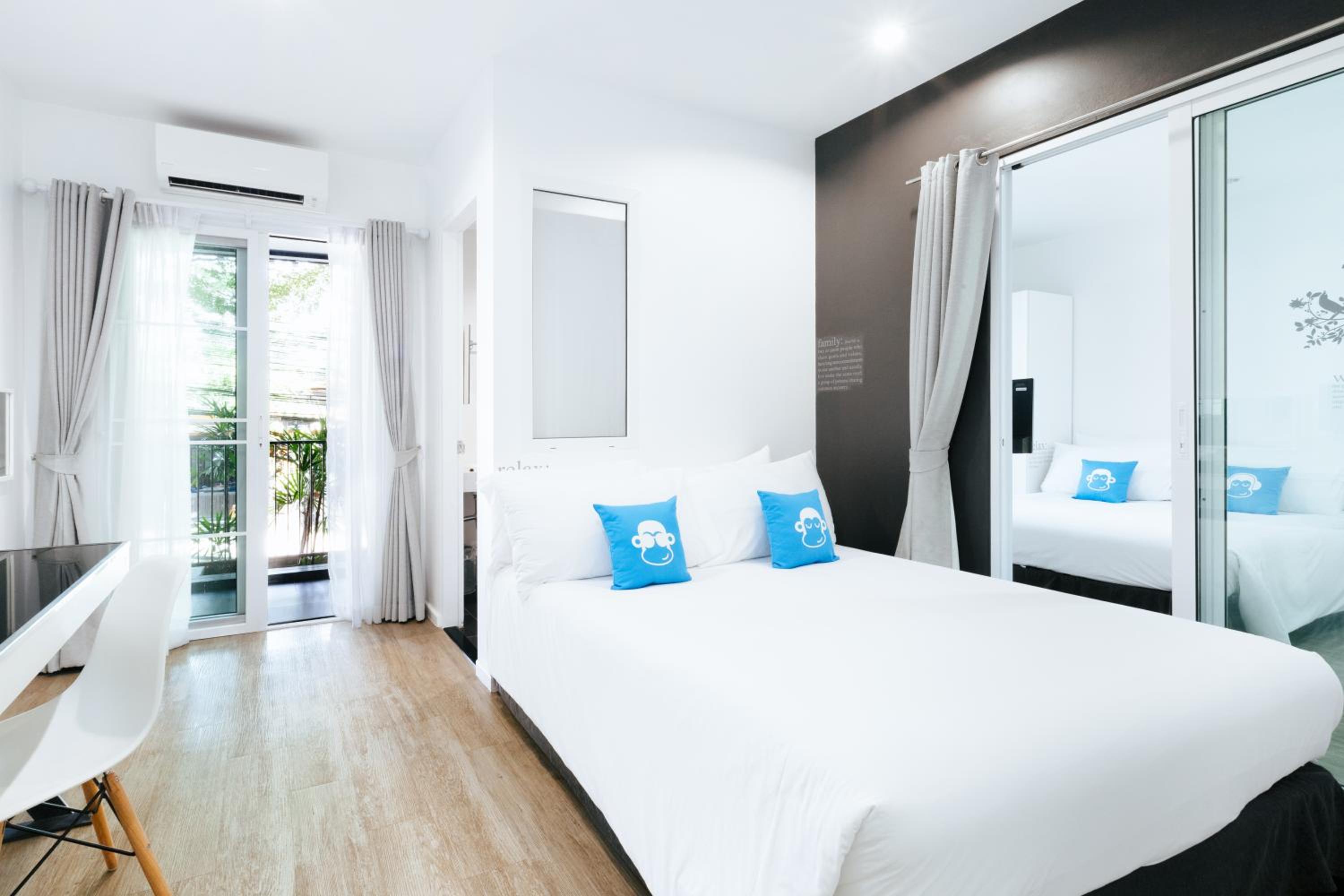 Stylish Rooms with Private Balcony: Experience comfort and style at Blu Monkey Bed & Breakfast Phuket with tastefully furnished rooms featuring a private balcony and free Wi-Fi. Enjoy the convenience of a flat-screen cable TV, a desk, and a refrigerator in each room.