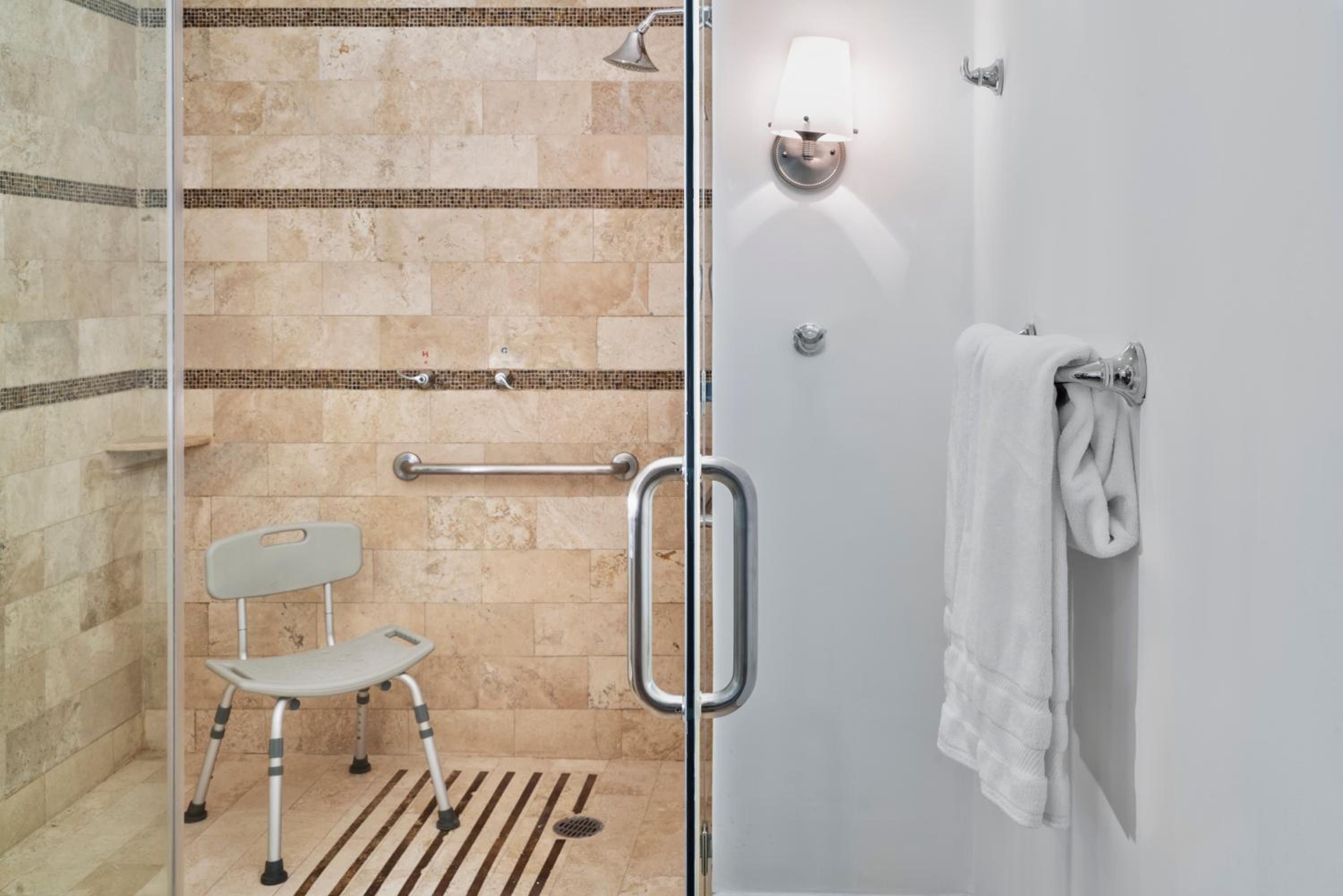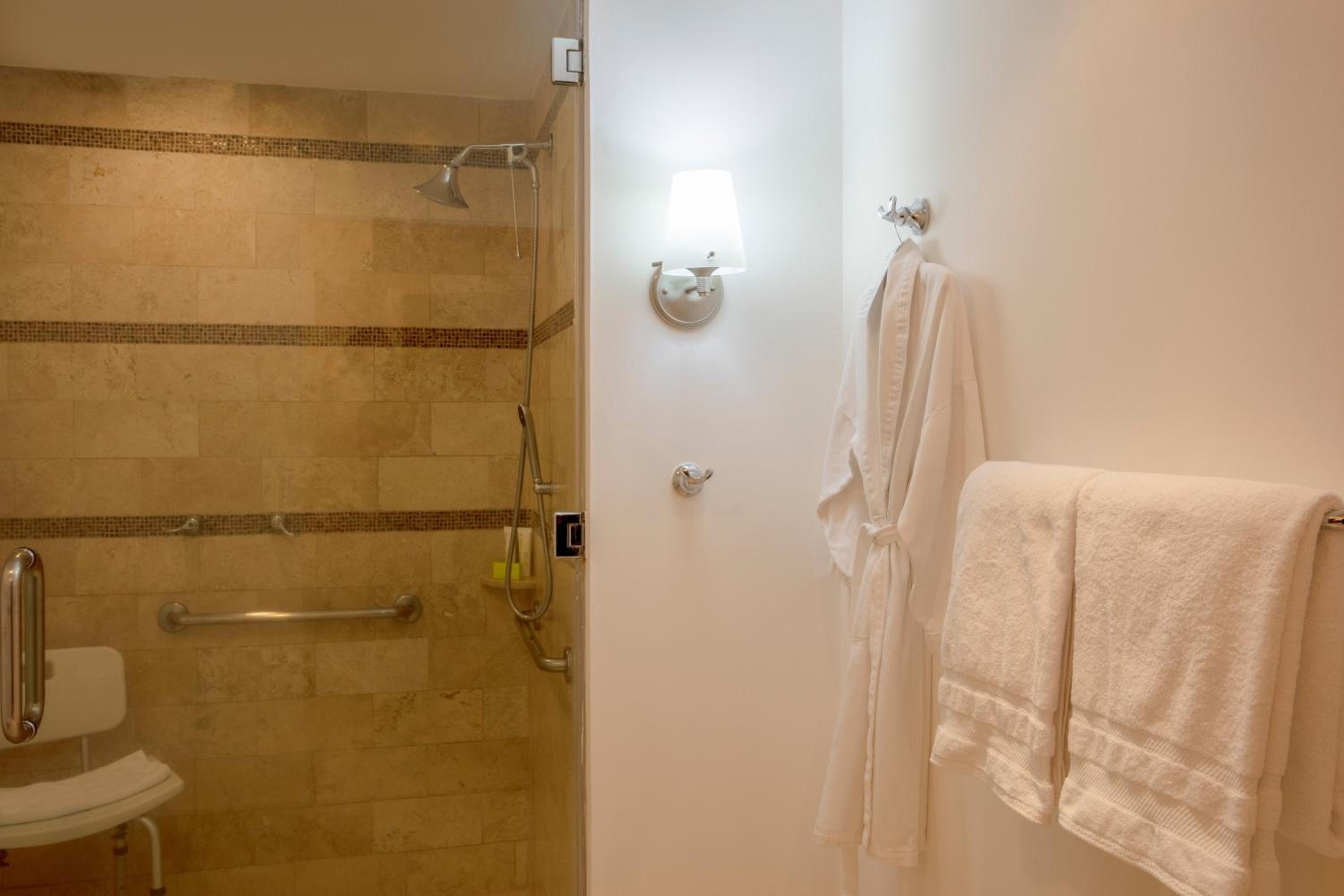 No robes or slippers. Shower door was installed backwards. The jets in the hot tub were awkward.