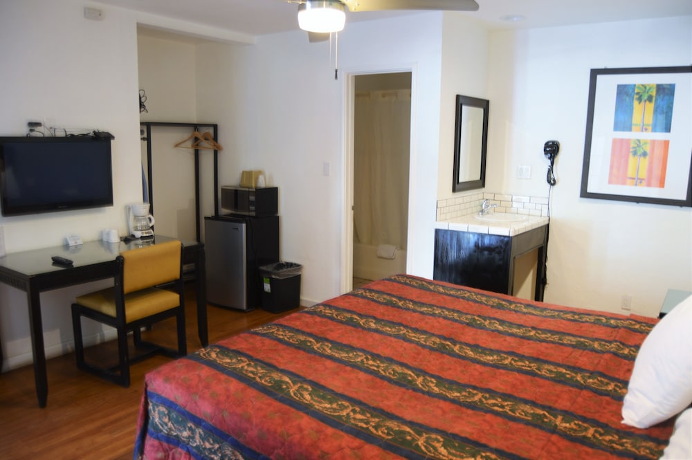 Like I always say, you get what you pay for. Overall this isn't really a three star hotel but it gets a three star review because of my motto. We needed a place to stay in Palm Springs just for a few hours of sleep so we didn't want to spend a ton of money. This was one of the cheapest options and it served it's purpose. The room was clean and that is all you can really ask for. The bed was super uncomfortable and the headboard would hit the wall if you moved at all. Check in was strange, the entire process was done from behind a window.