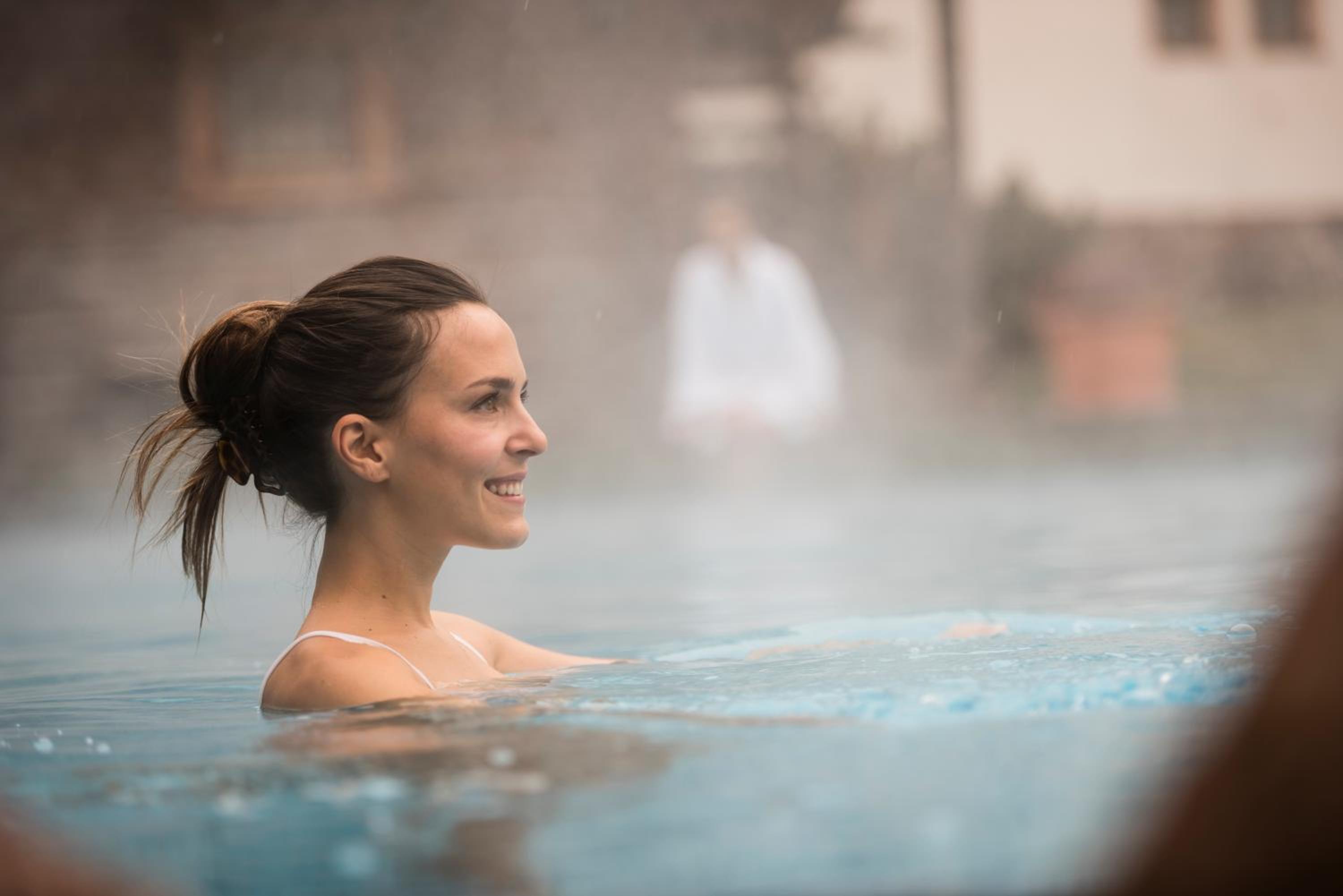 La gentilezza la pulizia e una spa contenuta ma graziosa con tutto il necessario saune bagno turco idromassaggio e una piscina bellissima dove si può uscire fuori nella neve.
