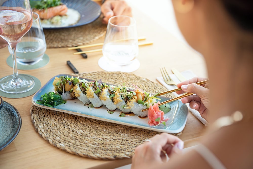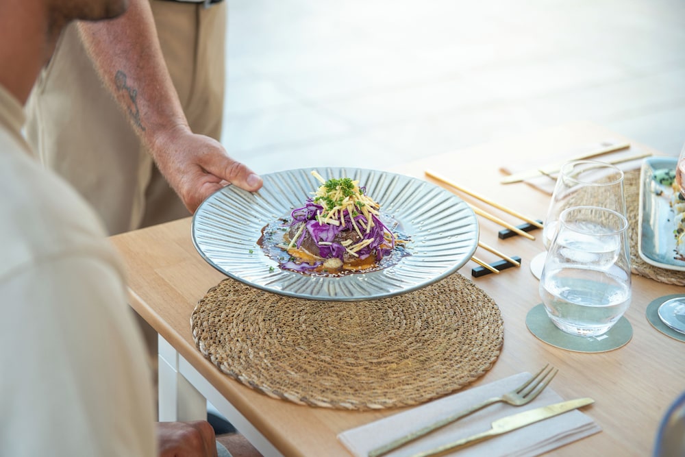 I recommend trying the hotel’s Kaafu restaurant for lunch. Staff are attentive and friendly. There are plenty of tasty options on the menu if you want a snack or a full meal. Service at Kaafu is very good. In the evening, it’s lovely to sit outside with a cocktail listening to a DJ set, singer or sax player.