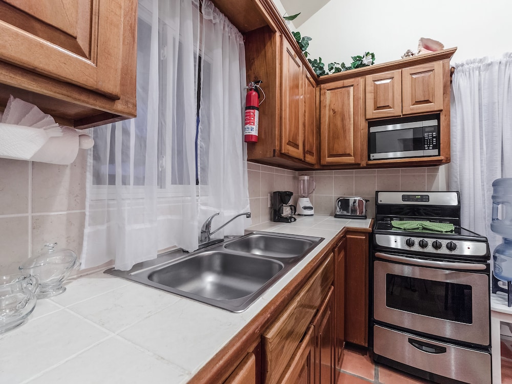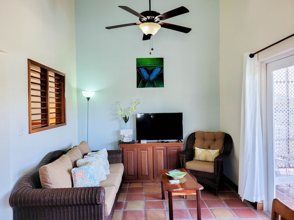 Rooms were clean and well maintained. Security (shout out to Marco) was fantastic. He was so helpful and always met us in the parking lot to make sure we got in okay. If you are an animal lover, there are cats and dogs to keep you company. Friendly, but well behaved. Must have golf cart to get around, but the drive is exciting and you notice something new every time! Locals appreciate a drive to or from work if you have room. Very safe.