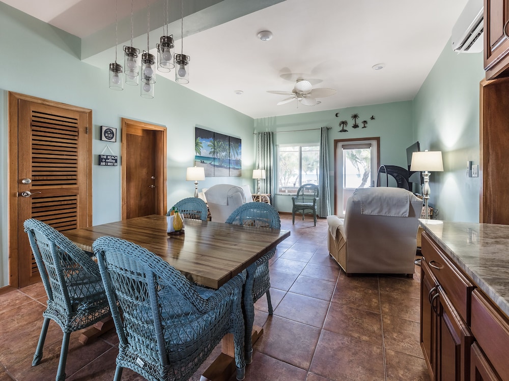 Really enjoyed our stay. Food was great onsite but not great value, our server ms Vicki was lovely. limited options nearby. Bar was great when it was open; Wilbur and Edwin were great. Pools and property were clean and meticulously maintained. Loved our single poolside room. The kitchen was well appointed and very clean. It was high sorgrass season on the beach and you’d need a bulldozer to deal with that stuff properly. Definitely rent a cart in town on your way in so you can visit some other beaches. Fishing off the dock was great. We took advantage of the bikes and kayaks on site. Staff were awesome, friendly and attentive. Overall we had a great experience. The beaches in the immediate vicinity north and south were covered in trash - definitely not the resorts fault, but someone should deal with it. The Saturday BBQ is not to be missed! Thanks Sapphire Beach Resort!