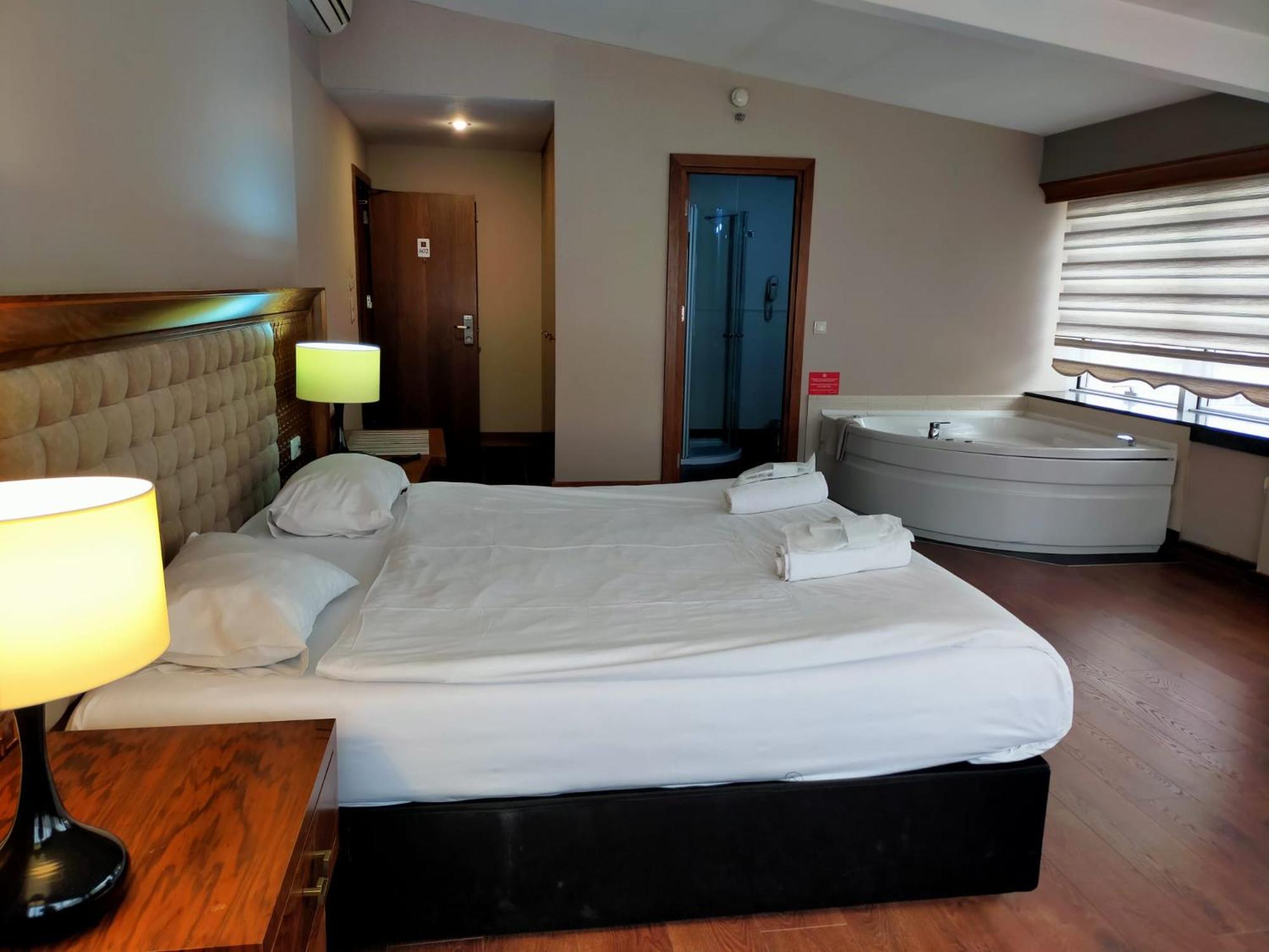 We had all the comfort we wanted! Large room, with heating/air conditioning, kettle (for tea/coffee), minibar, hot tub, TV, permanent hot water! Breakfast was very varied and tasty. The thermal pool is wonderful (36-38 °), has sauna and massage options, and free parking. Nearby you have very good restaurants, a minimarket, and the Karagöz museum. The staff is very well prepared and ready to respond to any request. Thank you for a wonderful stay
