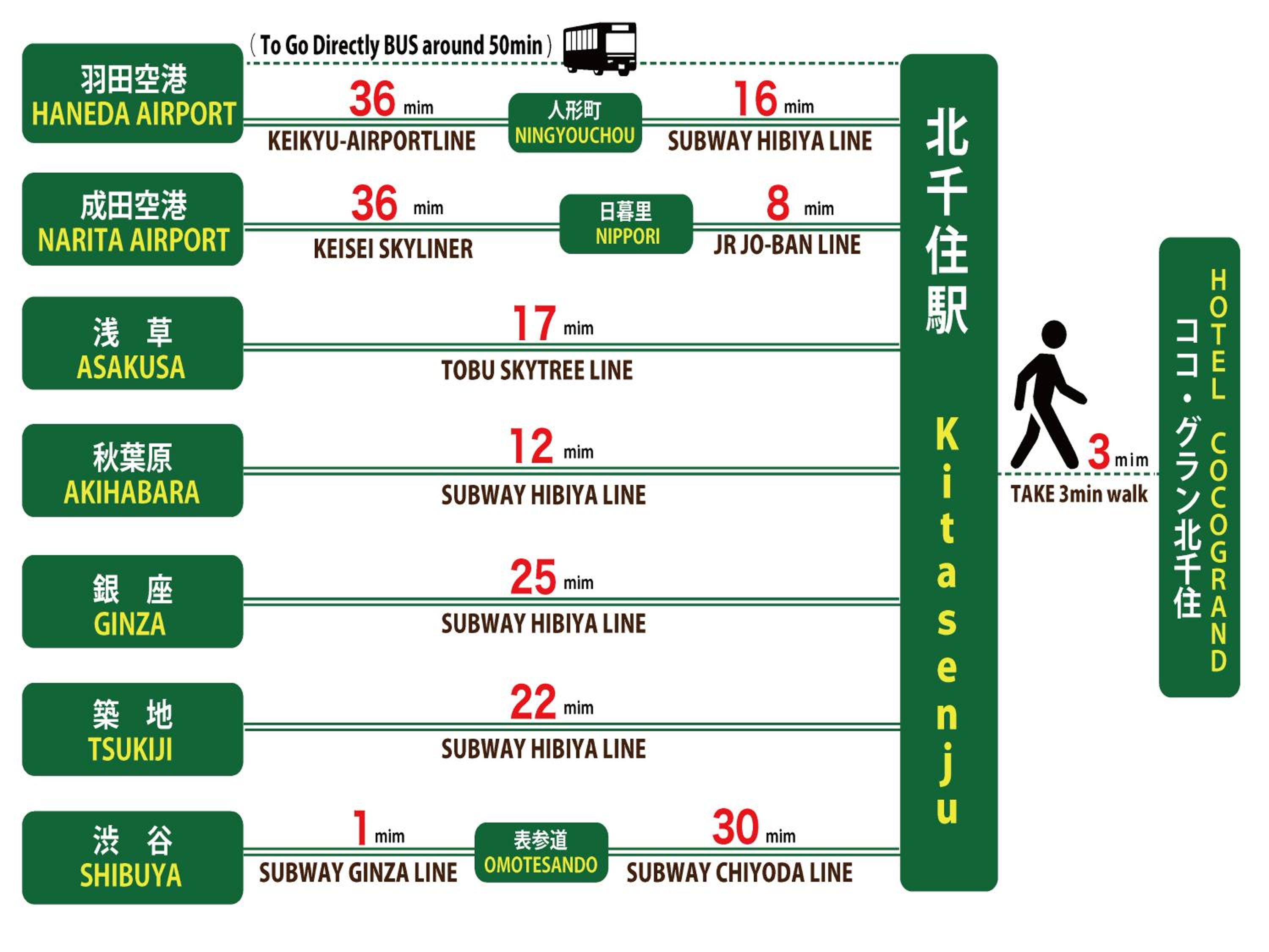 3min a pied de la gare de Kita-Senju (très bien pour aller à Nikko ou rejoindre Asakusa, Akihabara, Skytree rapidement).
