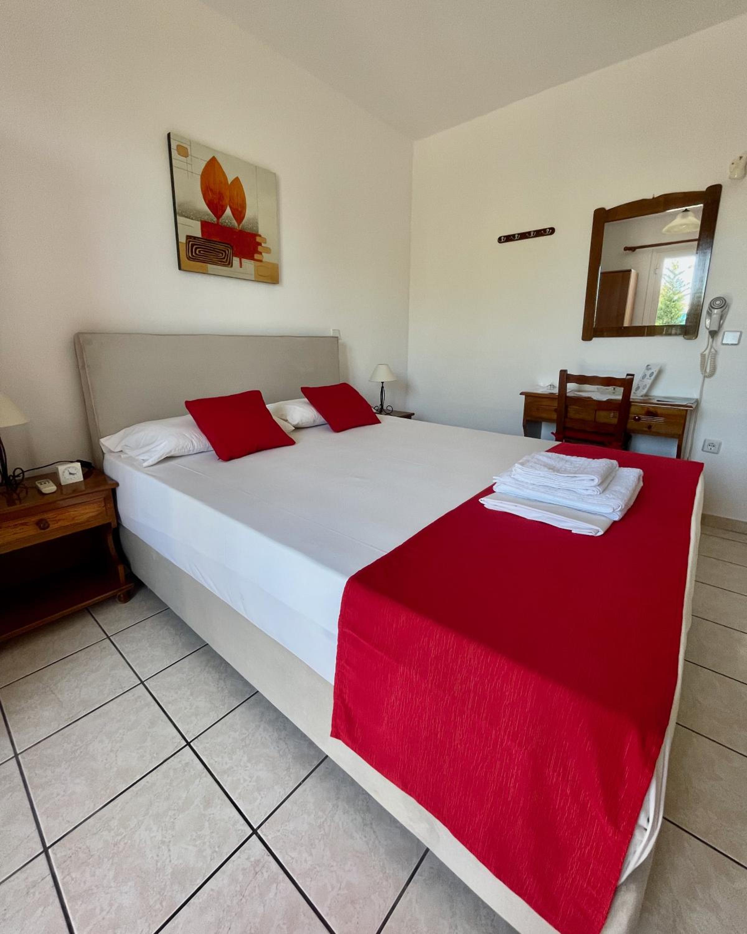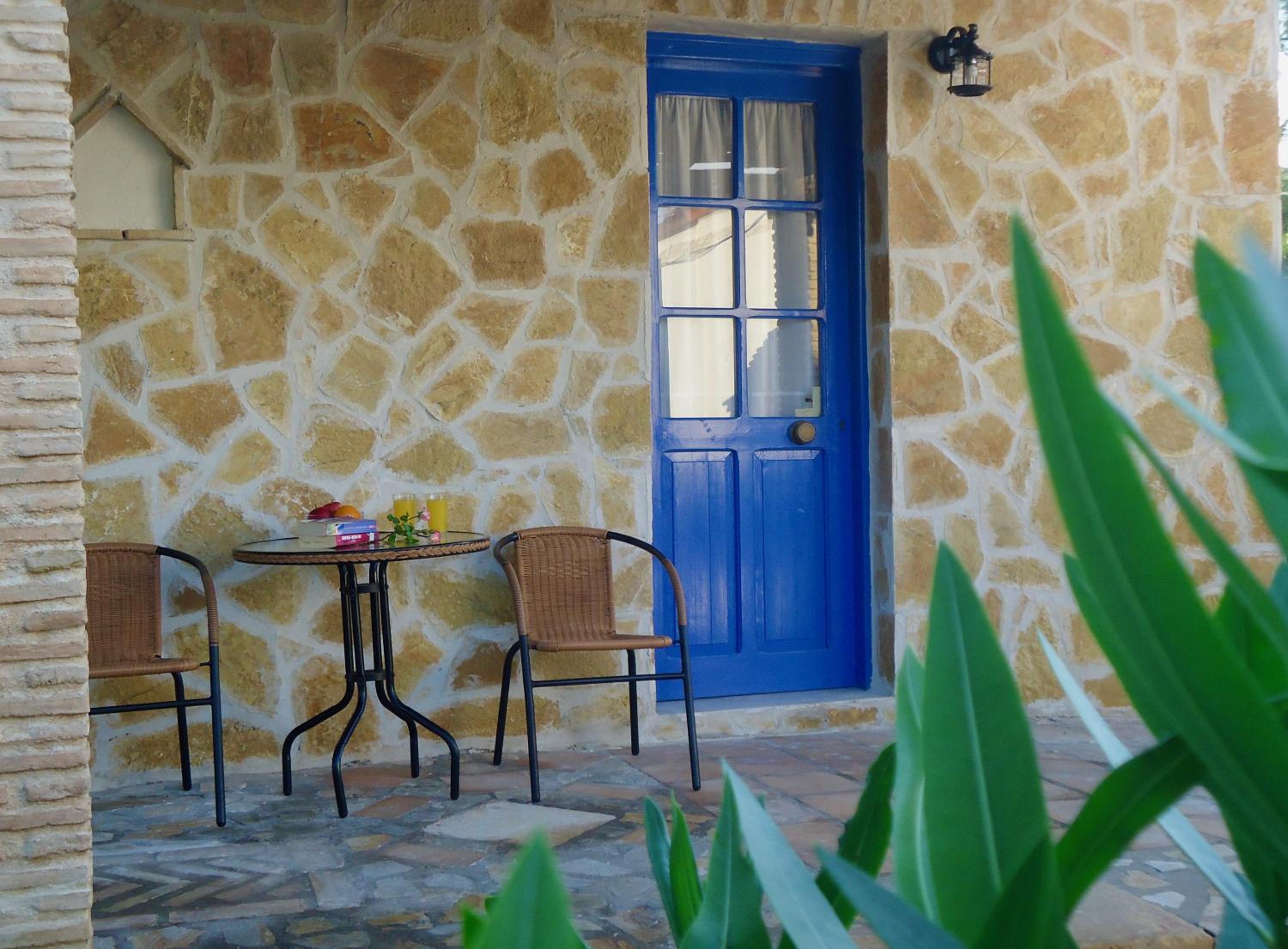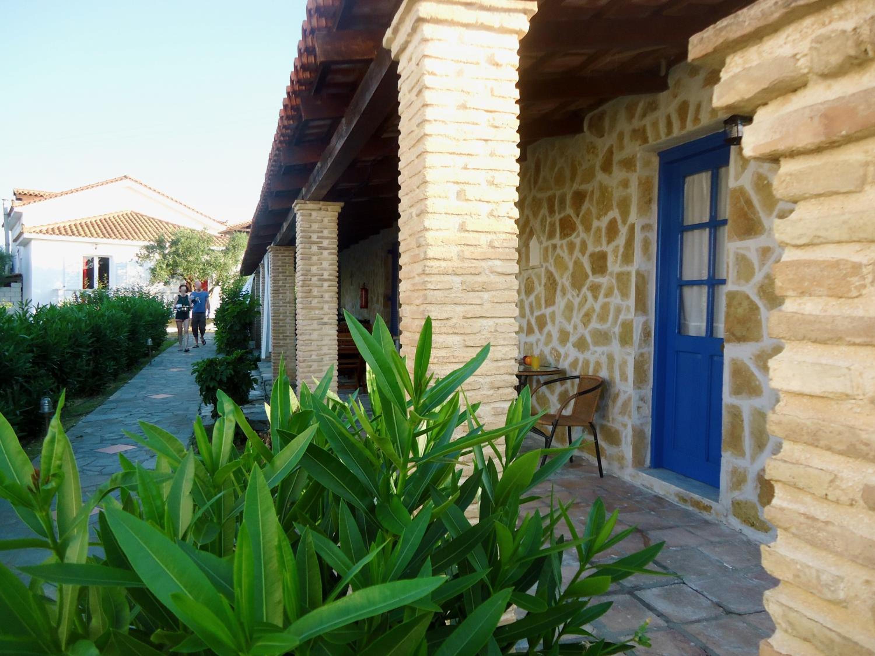 Lovely setting of charming buildings in well kept gardens. Each small building has a slightly different style with clean, comfortable, and good sized rooms. The pool is beautifully clean and is next to the bar selling a wide variety of drinks and food, typically delicious Greek cuisine. The hosts are charming and happy to accommodate requests. Breakfasts are delicious and there is a different special dish from Nana everyday, from traditional pies to sweet pies and frangipani.