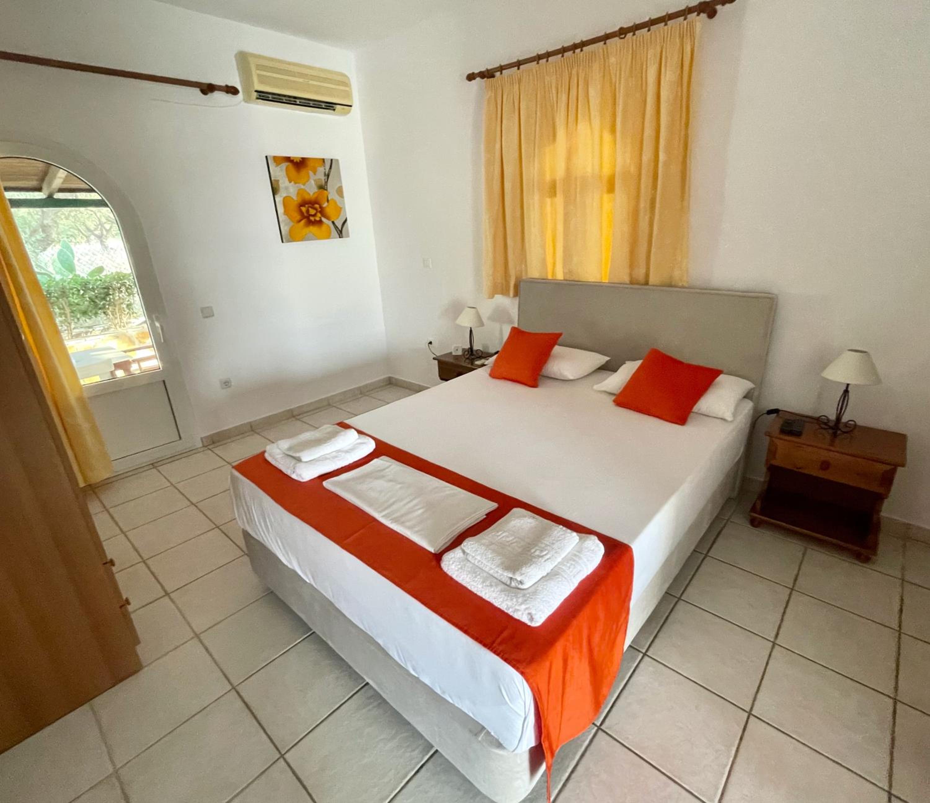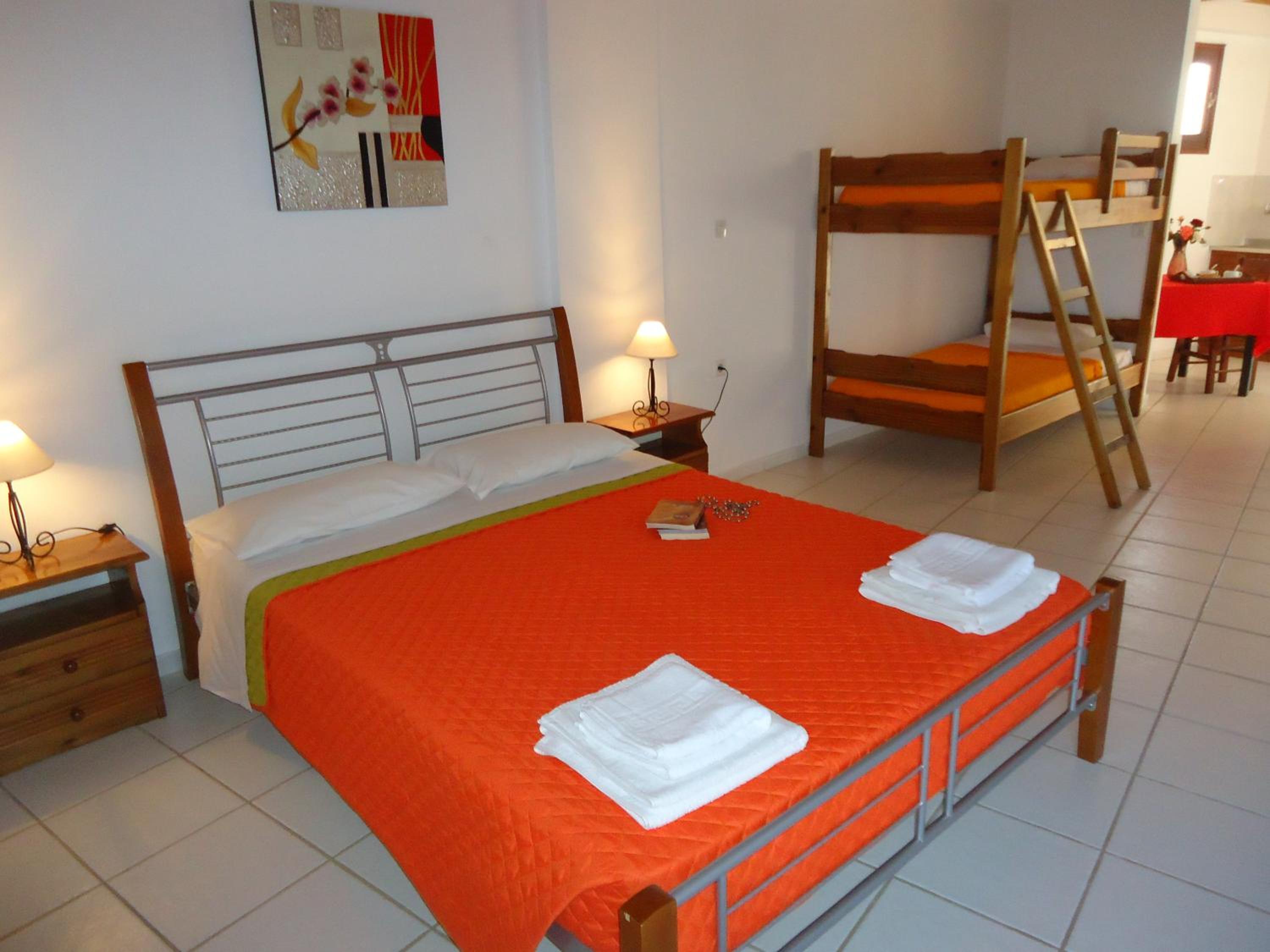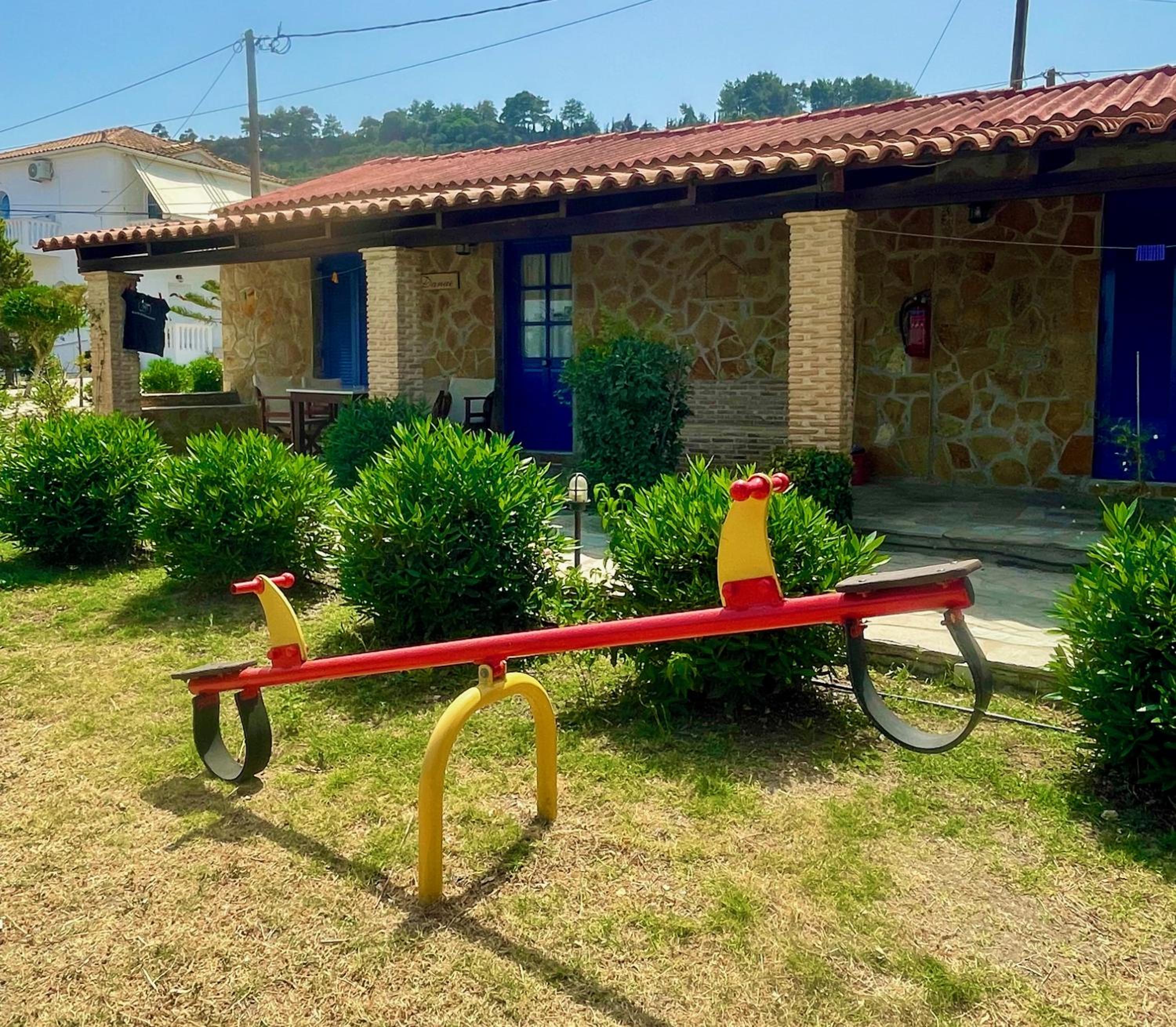 Lovely setting of charming buildings in well kept gardens. Each small building has a slightly different style with clean, comfortable, and good sized rooms. The pool is beautifully clean and is next to the bar selling a wide variety of drinks and food, typically delicious Greek cuisine. The hosts are charming and happy to accommodate requests. Breakfasts are delicious and there is a different special dish from Nana everyday, from traditional pies to sweet pies and frangipani.