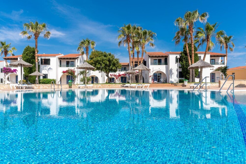 Good apartments close to great pool. Lots of Spanish families as well as English. Food good. Live music probably not my cup of tea. Really impressed with maid service, cleaned twice each week with new towels and bedding 3 times. Right outside bus stop to Cuitadella