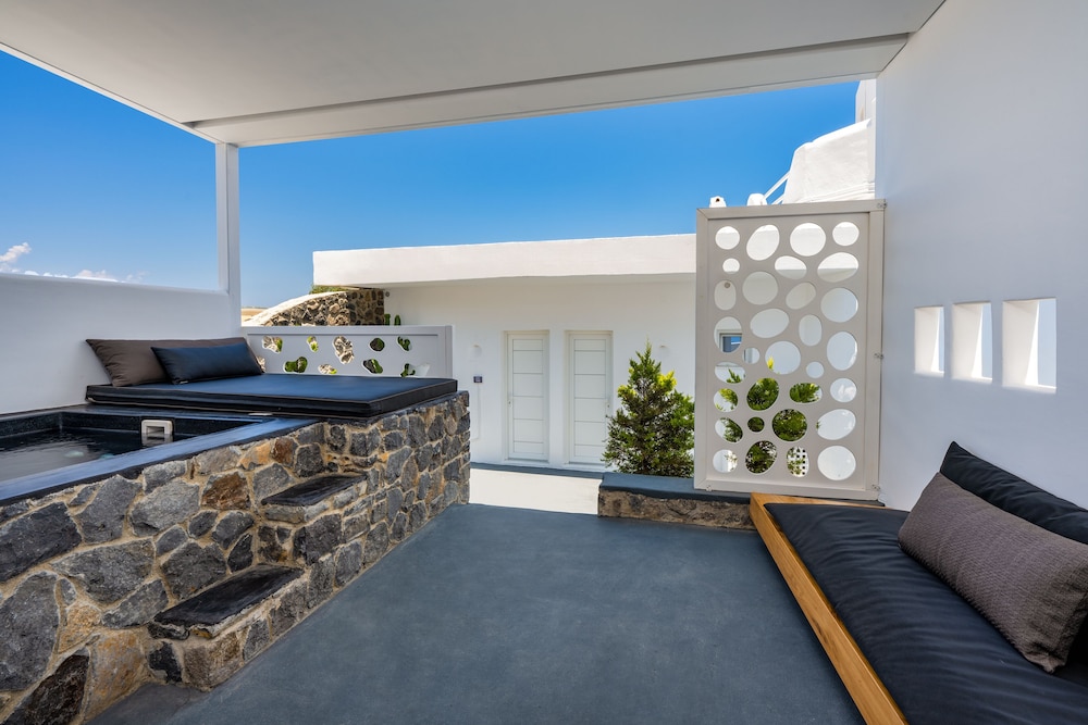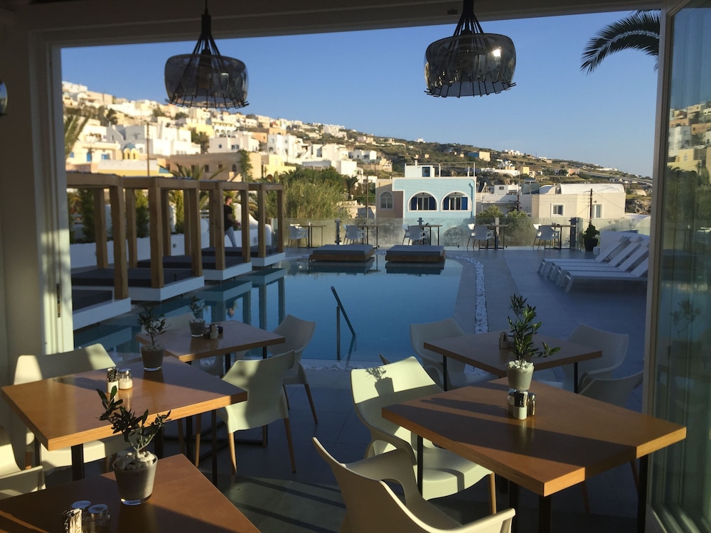 Executive room was good. Downside was no shade to get out of the sun. This also applies to the pool area where the umbrellas are inadequate. Breakfast had a decent choice but was open to the elements with lots of flys unhygienic and unacceptable. Short walk if you are fit to Fira on a very unsafe road. Photos look nice but tired cushions and loungers in reality. Unfortunately I cannot recommend this property.