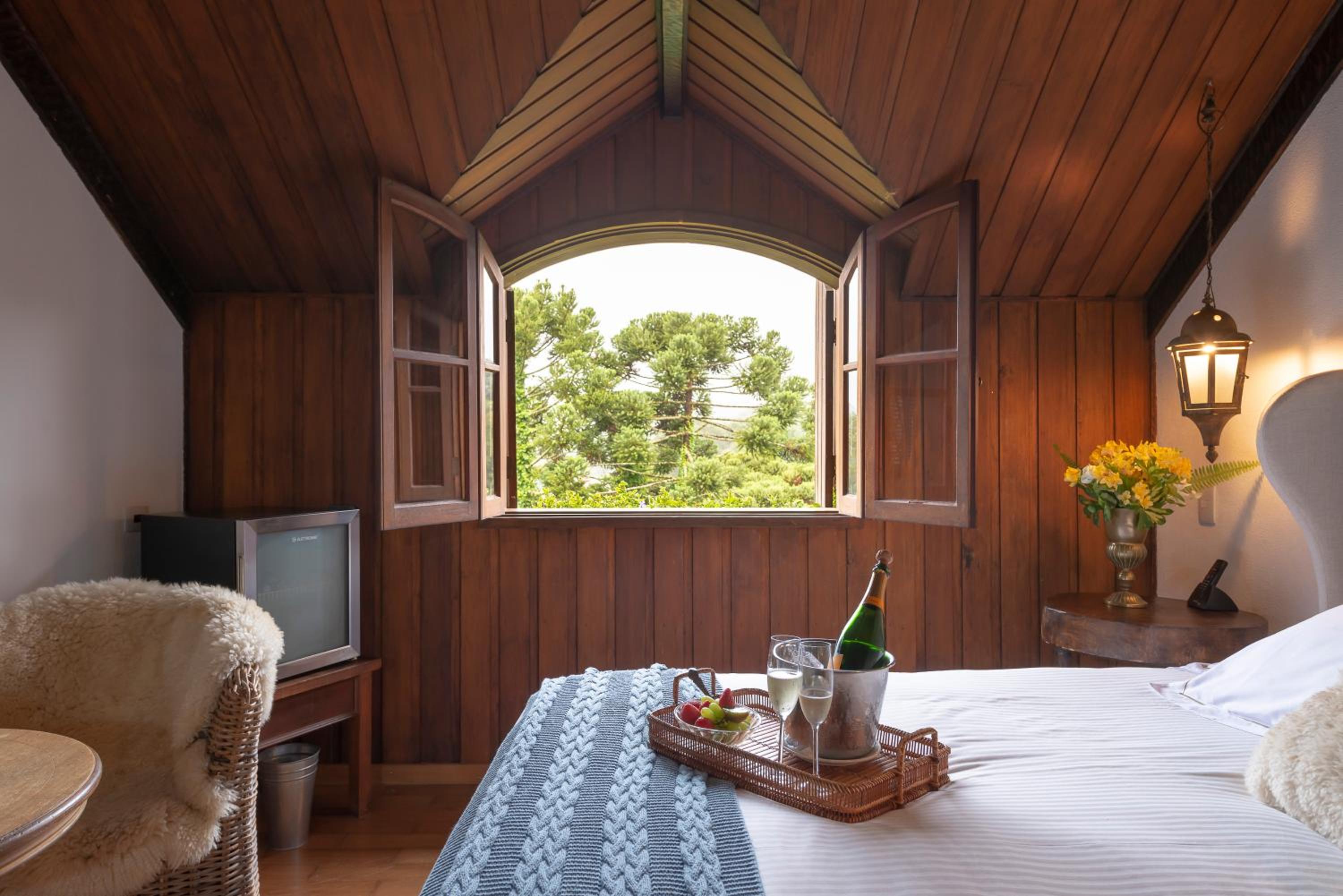 Nossa hospedagem foi muito agradável. Nosso quarto era super aconchegante, espaçoso, vista para paisagem verde e com araucárias. O café da manhã servido até as 13h nos permitiu acordar sem pressa. Nosso café da manhã foi servido no jardim, ao ar livre, muito agradável! No final de semana o hotel tem um chef que promove jantar para os hóspedes interessados. Os mascotes do hotel são muito fofos! Amamos nossa hospedagem!