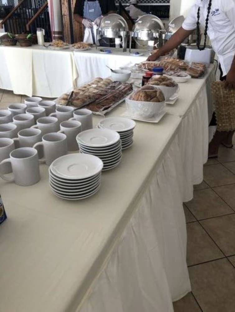 Our team had a great stay at the Jet Over. Great service, both at the front desk and in the restaurant. Breakfast was tasty and served buffet style, so no waiting! Dinner was also good. Nice beds in very clean rooms. The area near the pool is so beautiful and serene, it is breathtaking and so relaxing.