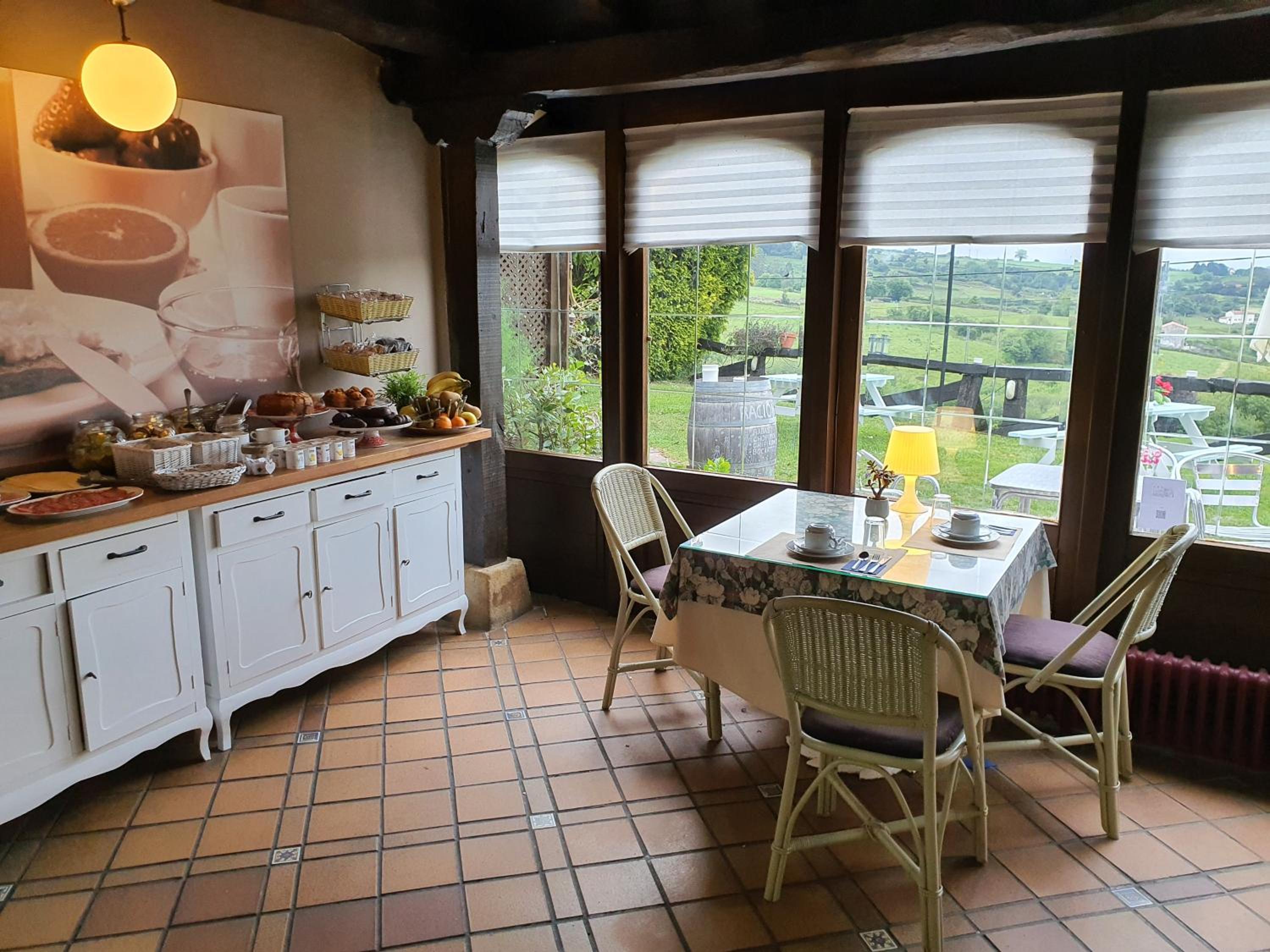 Todo el personal era muy amable. El entorno es excepcional, tranquilo y rodeado de pastos. Además se podía ir perfectamente andando al centro de Santillana. El extra de la piscina es genial. Y sin problemas para aparcar porque hay parking gratuito.
