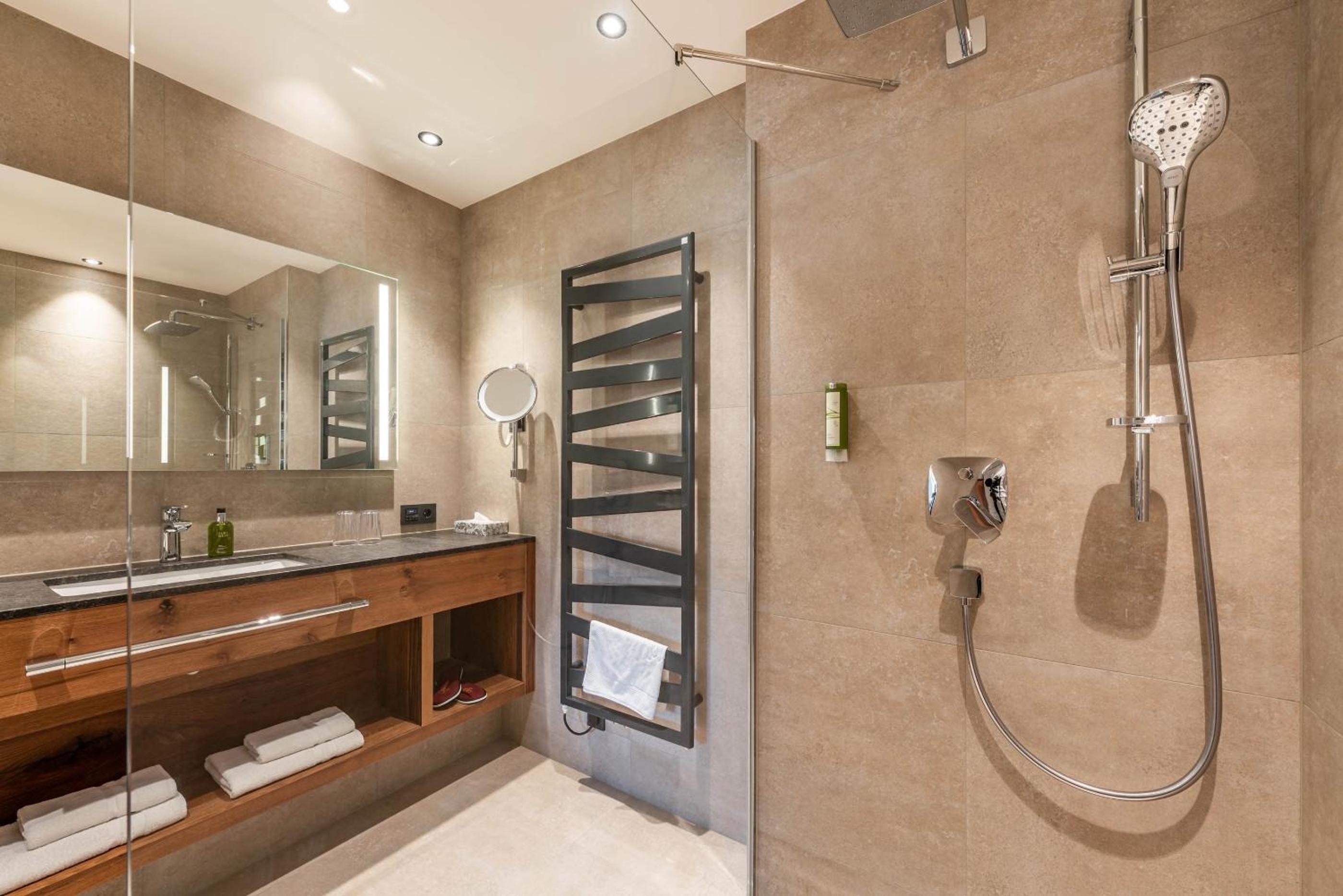 Indulge in modern rooms with balconies, flat-screen TVs, and stylish bathrooms at Hotel Pramstaller. Relax in comfort and enjoy the serene surroundings of Scheulingwald Nature Reserve.