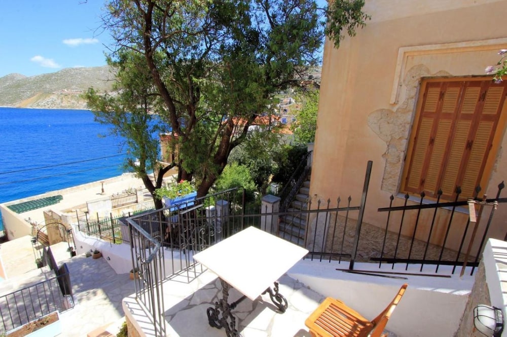 We arrived by ferry from Rhodos and were picked up by the nice host Fotini. The hotel is just a few steps away from the ferry, but in order to enjoy the view you have to climb up some stairs. So don't overpack your suitcase! The hotel has 4 rooms, one of them with a balcony, and small terrasses on each level for the others, so plenty of space to sit outside.