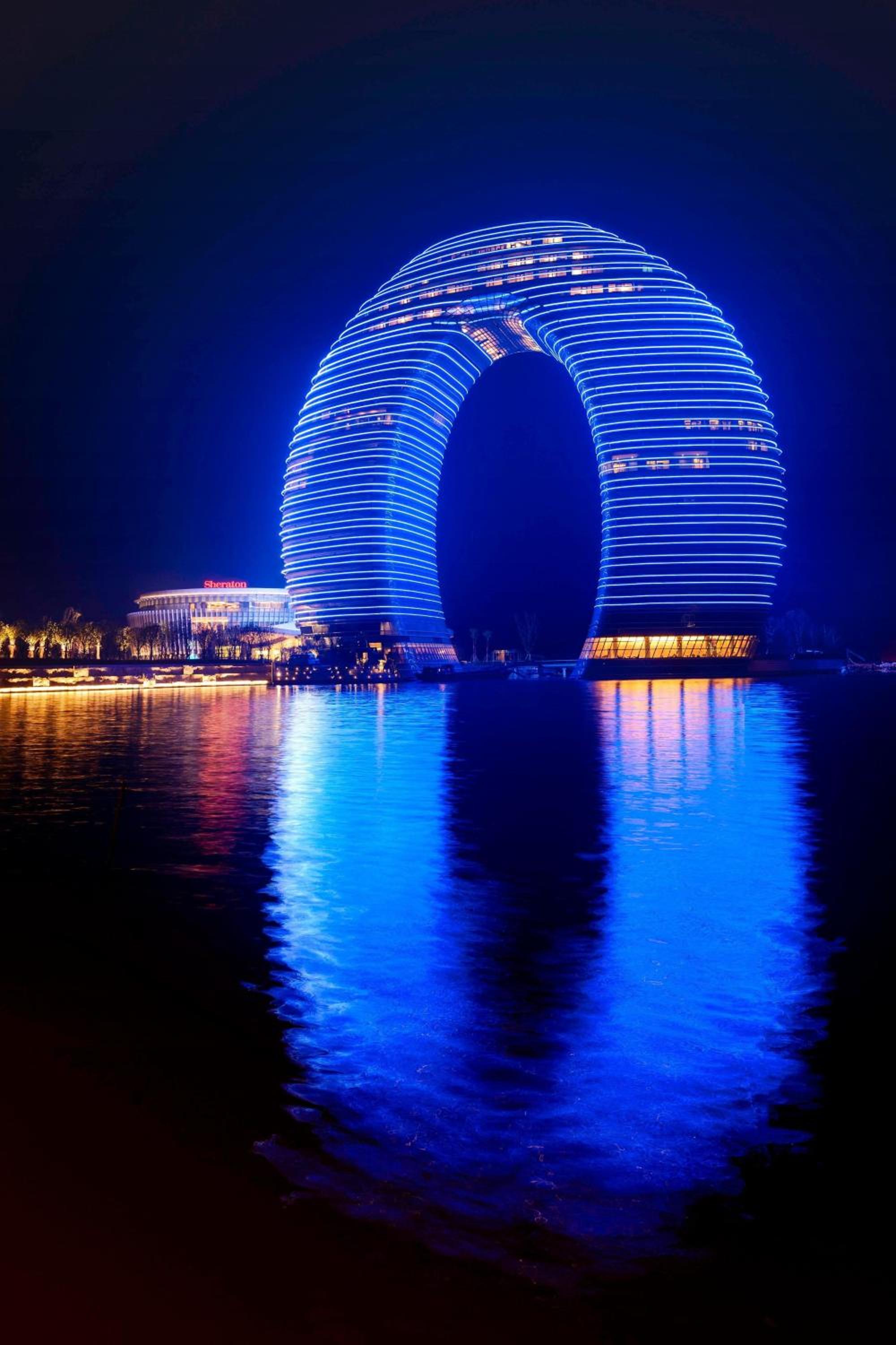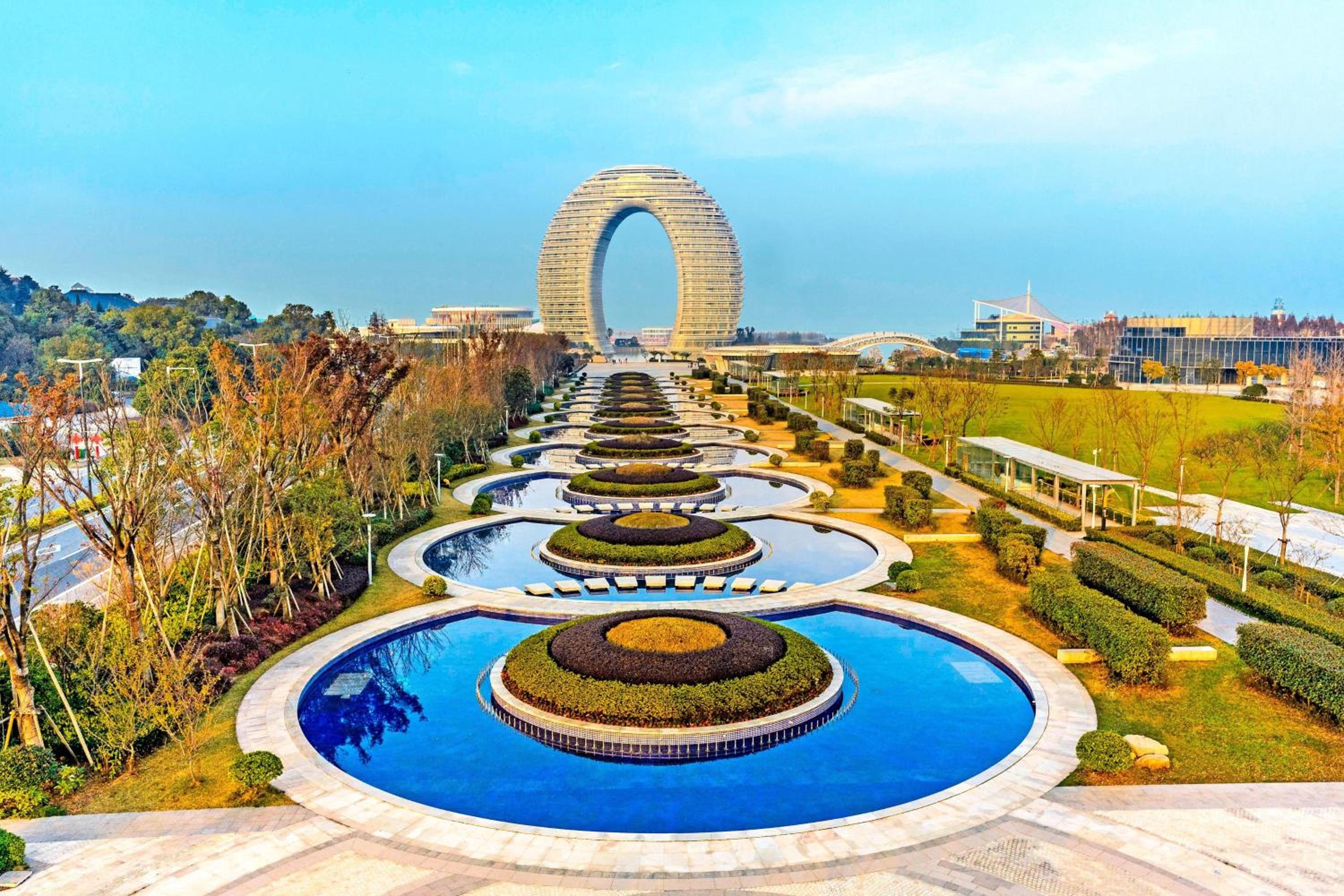 Sheraton Huzhou Taihu Lake Hot Spring Resort & Spa stands out with its iconic ring-shaped design, offering a visually stunning and memorable stay by Taihu Lake.