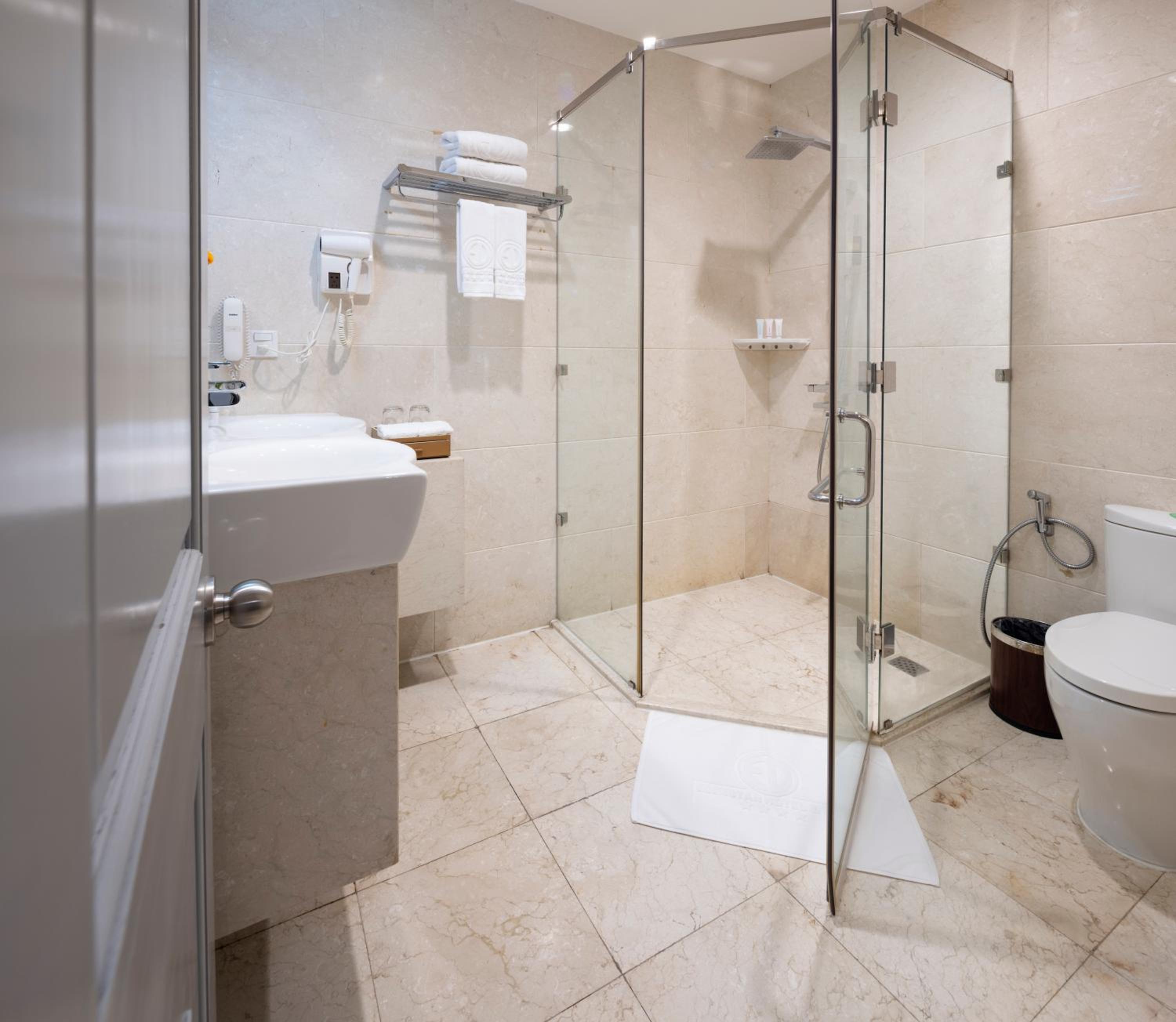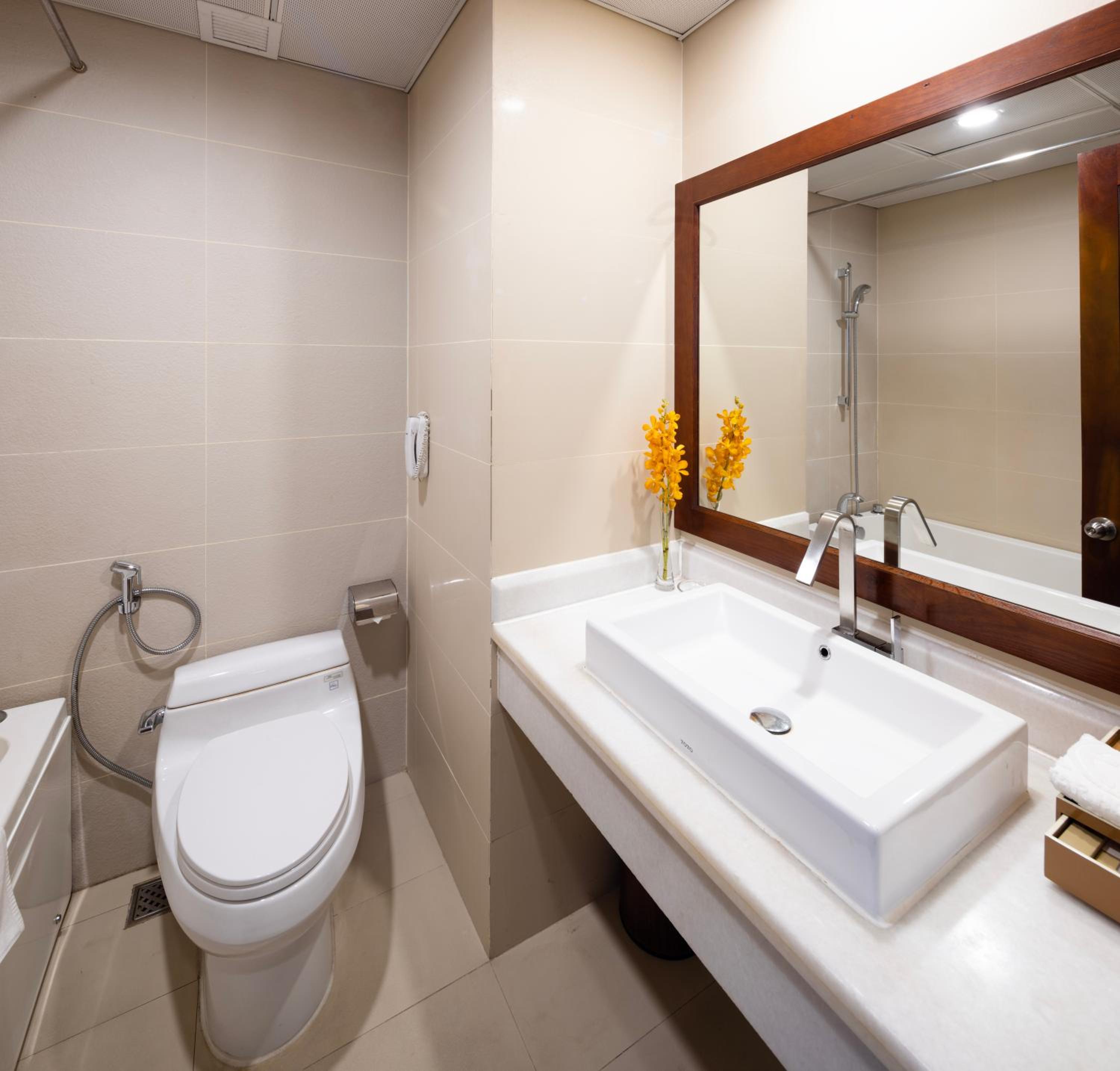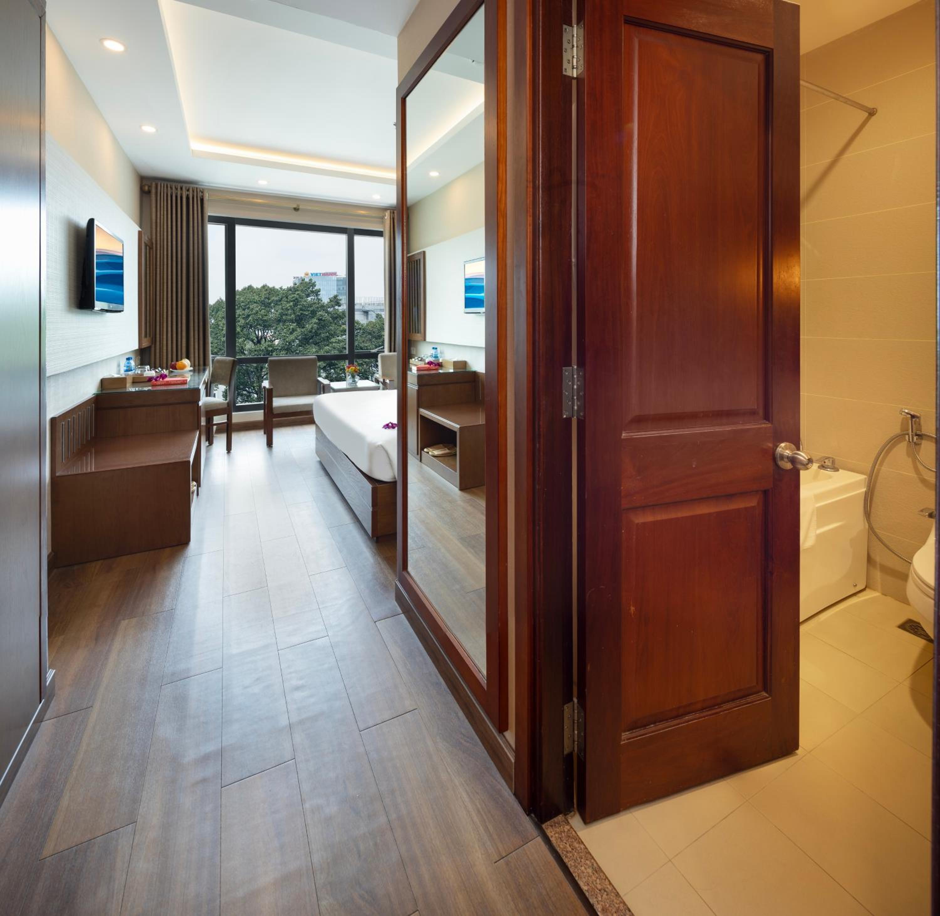 Experience modern air-conditioned rooms at EdenStar Saigon Hotel & Spa, featuring a flat-screen cable TV, minibar, and elegant en suite bathrooms with free toiletries.