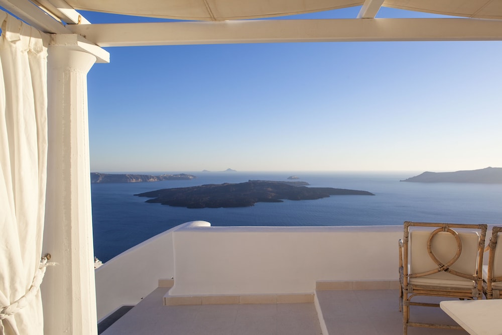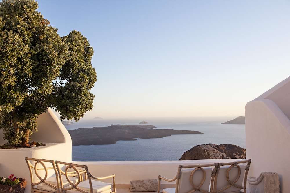 Super nice and cozy hotel. Nice view of the Caldera and ships coming and going from the balconies. Each room has a very exquisite art collection!
