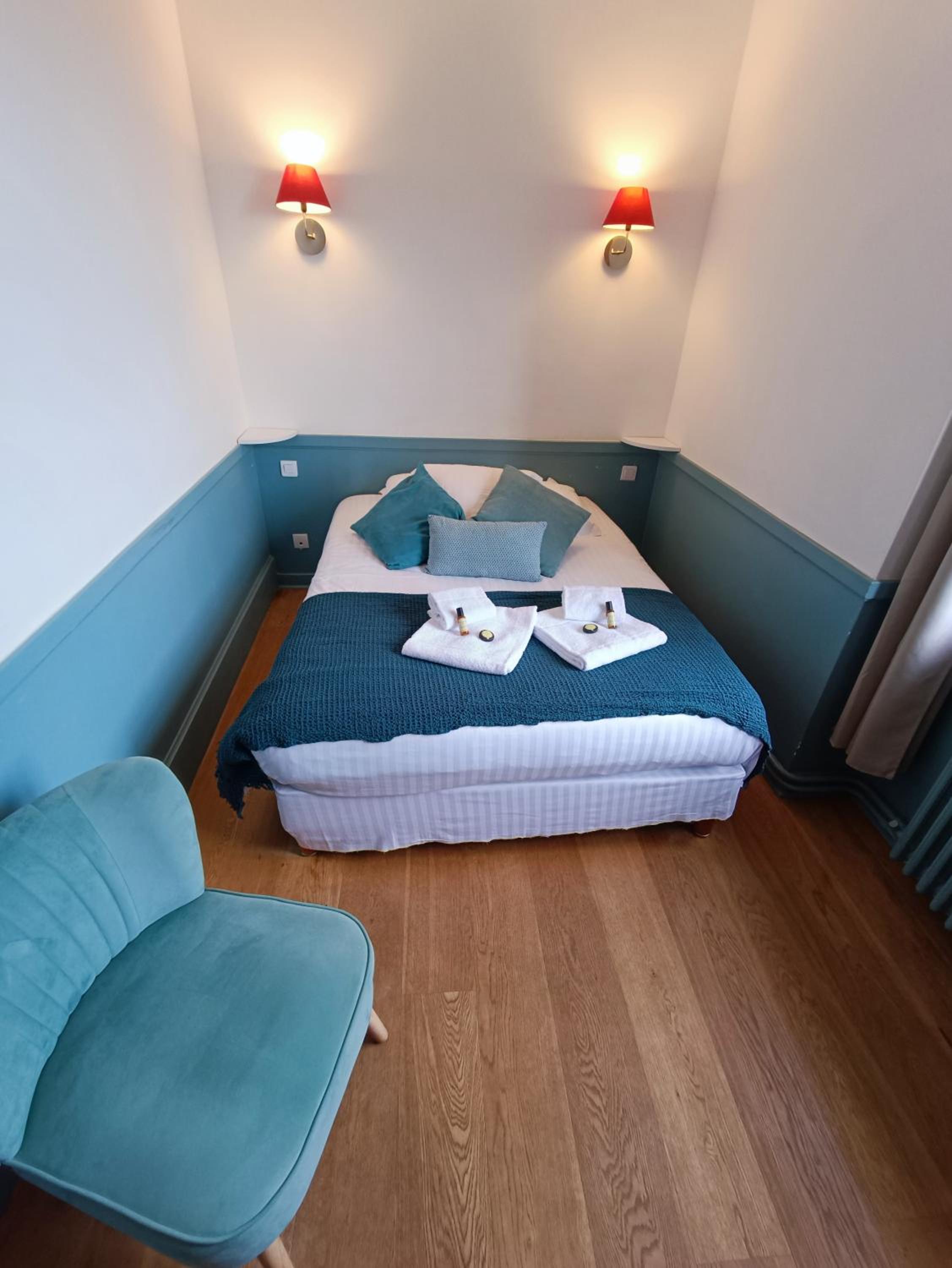 L'ancienneté du bâtiment, l'emplacement, le charme de la chambre, et le personnel bienveillant et agréable