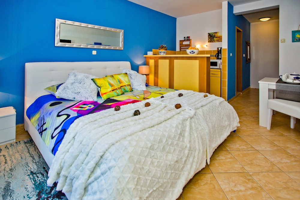 Extremely nice and helpful hosts, they welcomed us with cold drinks at check in and gave us lots of recommendations and a bottle of croatian wine and chocolates as a welcome present. Its a short walk to the port and there is a super market near hy. Very happy with the room. There were lots of toiletires, towels and a fridge and and kettle. Very happy with this accommodation, thanks!
