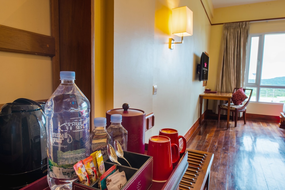 If you're tired of the heat and want to find a place where you can enjoy being outside, the Thansur Sokha Hotel is the place to go. I received wonderful service, especially for Asst FO Manager Nam Sabath, who went out of his way to make sure we had a pleasant experience. I booked a larger room, the Ramdal and it had a bed large enough to accommodate my two sons and I. It was clean, cool, and had a sitting area with a couch if someone wants to rest while others are active. The hotel itself has many amenities: several restaurants, game area for the kids, indoor pool, and casino, but what I loved were the sights here. There are some beautiful historic buildings to view such as the "old catholic church" and the newly refurbished Le Bokor Palace Hotel for the history buffs and beautiful natural sights at Povokvil Waterfalls for those who enjoy the beauty of creation.