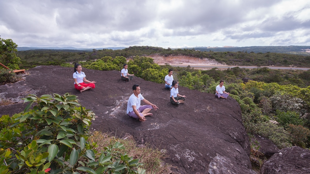 We stayed here during Chinese New Year, so the hotel was full of people and extra festive. The massage area is very close to reception, and I had the best one hour foot massage of my life! Our room was giant- a suite with 1 1/2 baths and a separate living room space. Breakfast was delicious, dinner was filling, and mid-day coffee with sweet milk was a treat. In the evenings a live band performed and it was really fun, like going to a concert without leaving the hotel. We took a guided tour one day and did some exploring on our own, both on foot and with rented bicycles. The park and surrounding area is well worth spending a few nights here. Plus, there is a shuttle from Kampot that runs two or three times each day, so it’s not impossible to reach without a car.