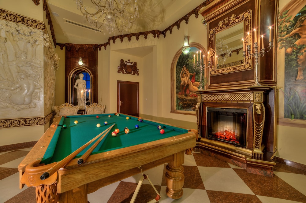 Duży pokój z luksusowymi meblami. W barze jest spory wybór alkoholi. Jest też bilard i łaźnia rzymska. W pokoju jest klimatyzacja, prysznic, toaletka z dużym lustrem, dwa fotele i krzesło. Bardzo blisko jest też zalew janowski z parkiem linowym i sportami wodnymi. W pobliżu jest też stadnina koni.