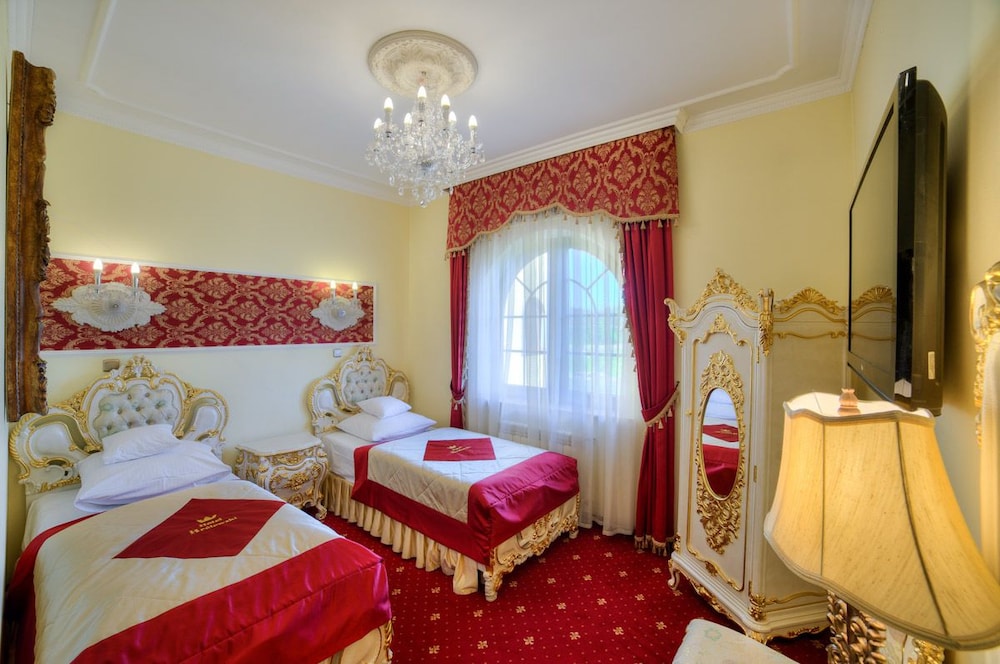Hotel ogólnie nie w moim stylu, ale zaskoczył mnie bardzo pozytywnie.Czyste pokoje, wygodne łóżko, obsługa bardzo przyjazna. Było mało osób, co sprawiło, że było spokojnie i cicho. Śniadanie bez zastrzeżeń, nieco skromne, ale przy niewielkiej ilości gości trudno było spodziewać się więcej.Styl jak najbardziej dworny- wszędzie obrazy króli, epizody historyczne, złote żyrandole, złote meble- mi osobiście to nie przeszkadzało, choć nie jest to mój styl. Najbardziej istotne elementy to komfort, wygoda,czystość, miła obsługa. Atut to cicha okolica, dogodne położenie, bezpłatny parking. Jedyne, co mi przeszkadzało to brak windy- nie lubię jak mi ktoś nosi bagaże, a schody wysokie.