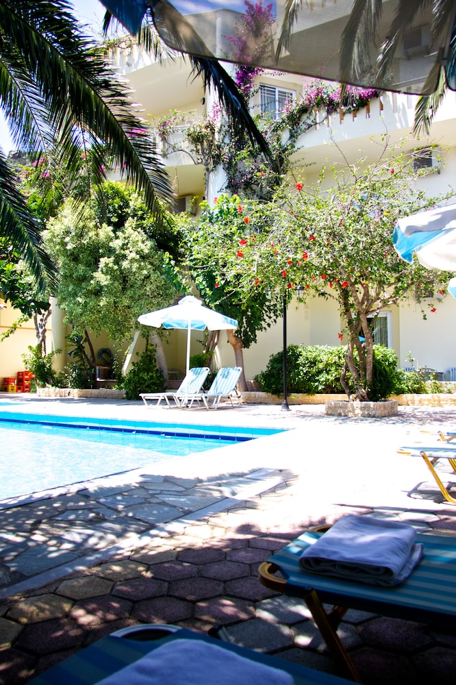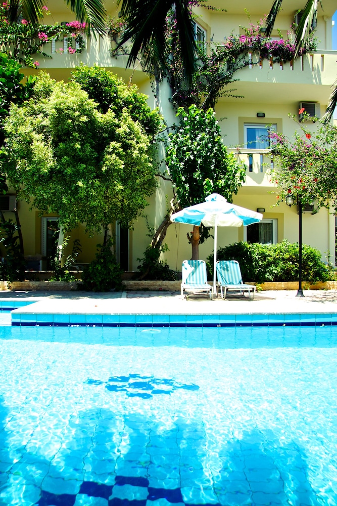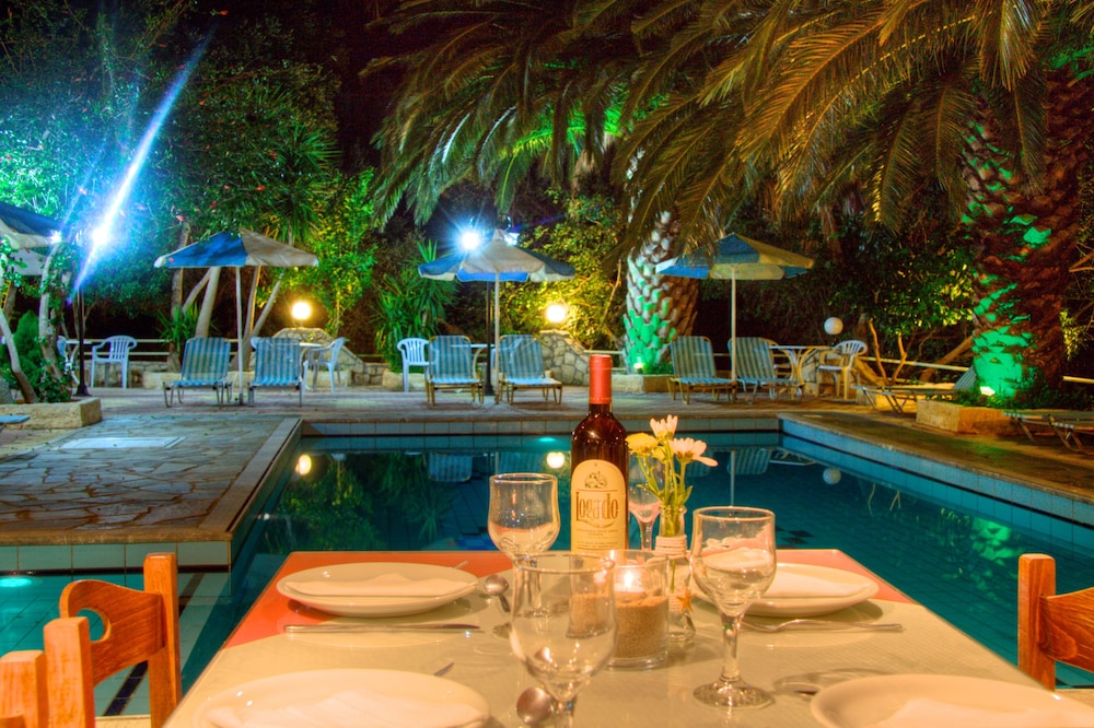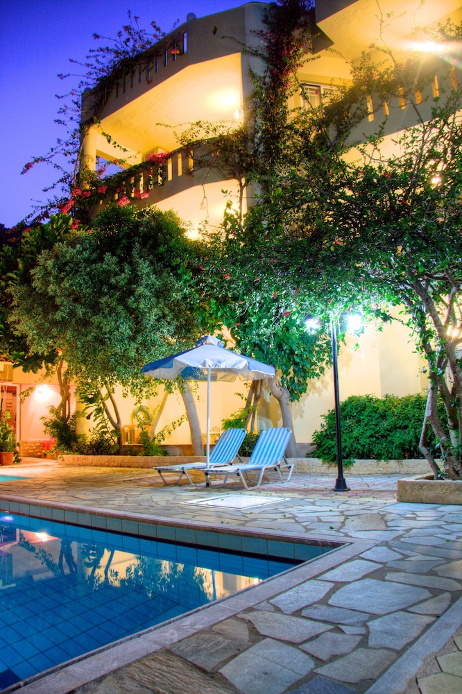 We were warmly welcomed by our host who showed us to one of the cleanest most well-maintained rooms we've ever stayed in in Greece. Balcony with proper chairs and table...washing line to dry you wet towels. Kettle etc in room. Everything you'd expect and more. We were told we could book breakfast or dinner with them if we wanted. We went out for an explore for the afternoon. When we came back and sat by the beautifully kept pool (the family are constantly lifting out petals and leaves) we were given home grown eating grapes to enjoy and then a meze plate of fried pumpkin which was delicious so we decided to book breakfast it's €7. After a very comfortable nights sleep we were greeted warmly at breakfast and directed to a simply amazing help yourself spread....there were eggs, bacon some unbelievably delicious sausage then about 10 different home made cakes and pastries, yoghurt, honey (their own!) Cheeses, croissants, bread (home made again) then jewel in the crown...the home made jam! We were told that she uses their honey to make it rather than sugar. It was outstanding! Tea, coffee and juices all available too. We barrel rolled ourselves off to the beach for the day after booking dinner with them which we were told was a meze bbq ...it didn't disappoint! Bread, Greek Salad, tzatziki and a plate of fabulous charcoal cooked meat & some fried potatoes then home made honey themed pastries for dessert...just wonderful! This is €15 pp A delightful example of Cretan Hospitality.