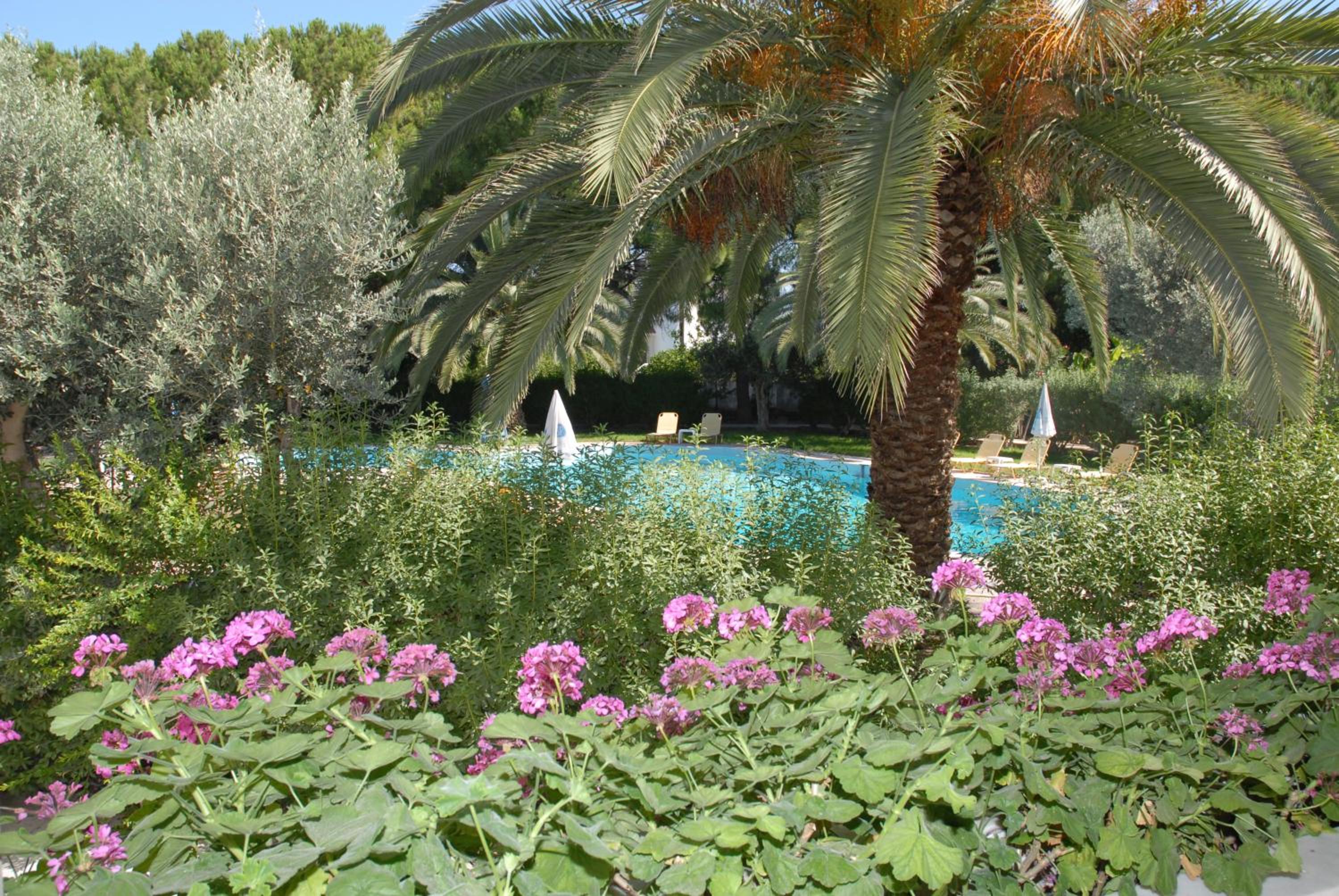 Serenity Amidst Nature: Nestled in a garden oasis with pine and palm trees, Niki Hotel Apartments offers a peaceful escape. Lounge by the outdoor pool or take a stroll to Ialyssos Beach just 800 meters away.