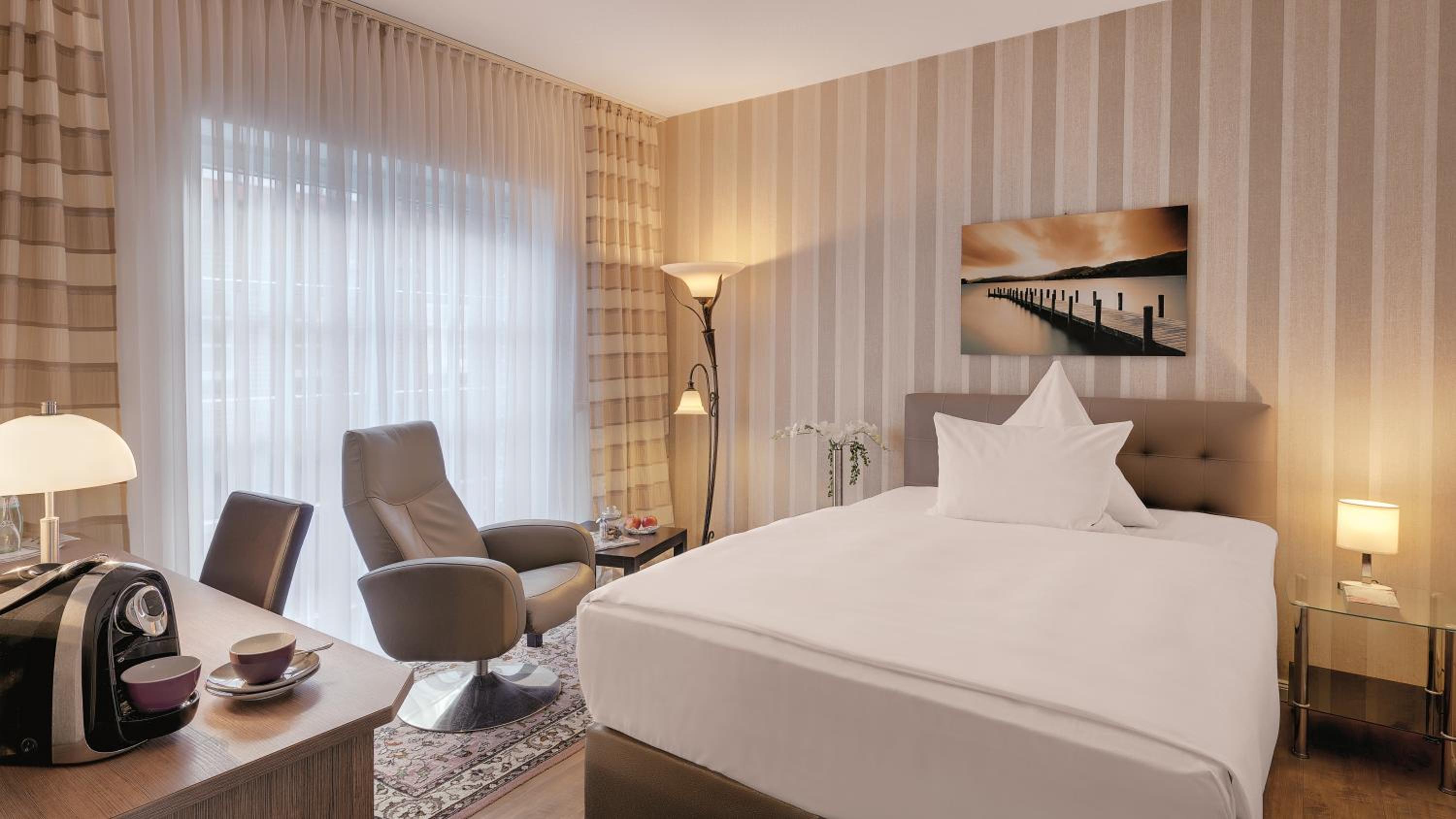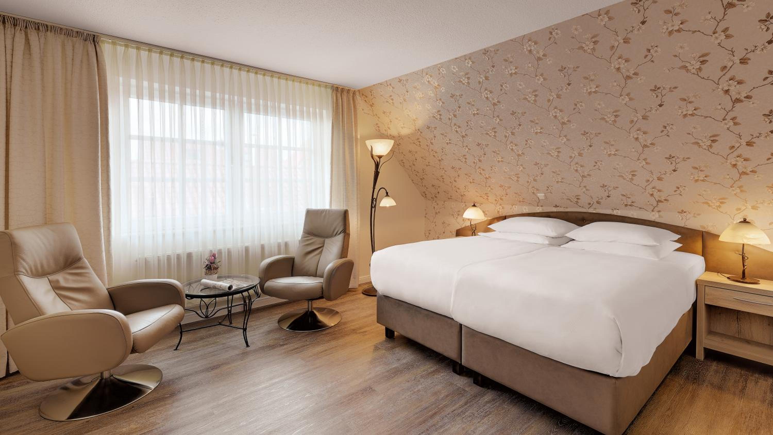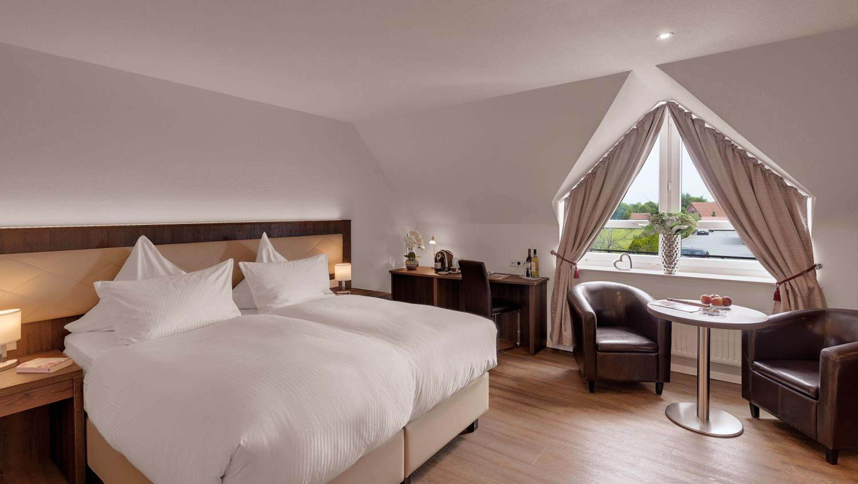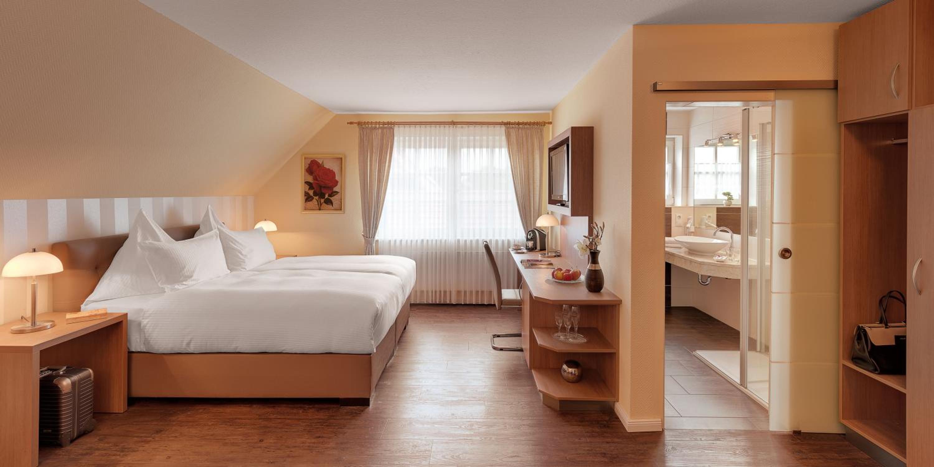 Wir hatten ein schönes Zimmer im 1 OG. Das Personal war sehr aufmerksam und sehr freundlich. Die Lage des Hotels ist sehr zentral. Der Ortskern ist in wenigen Minuten zu Fuß zu erreichen.