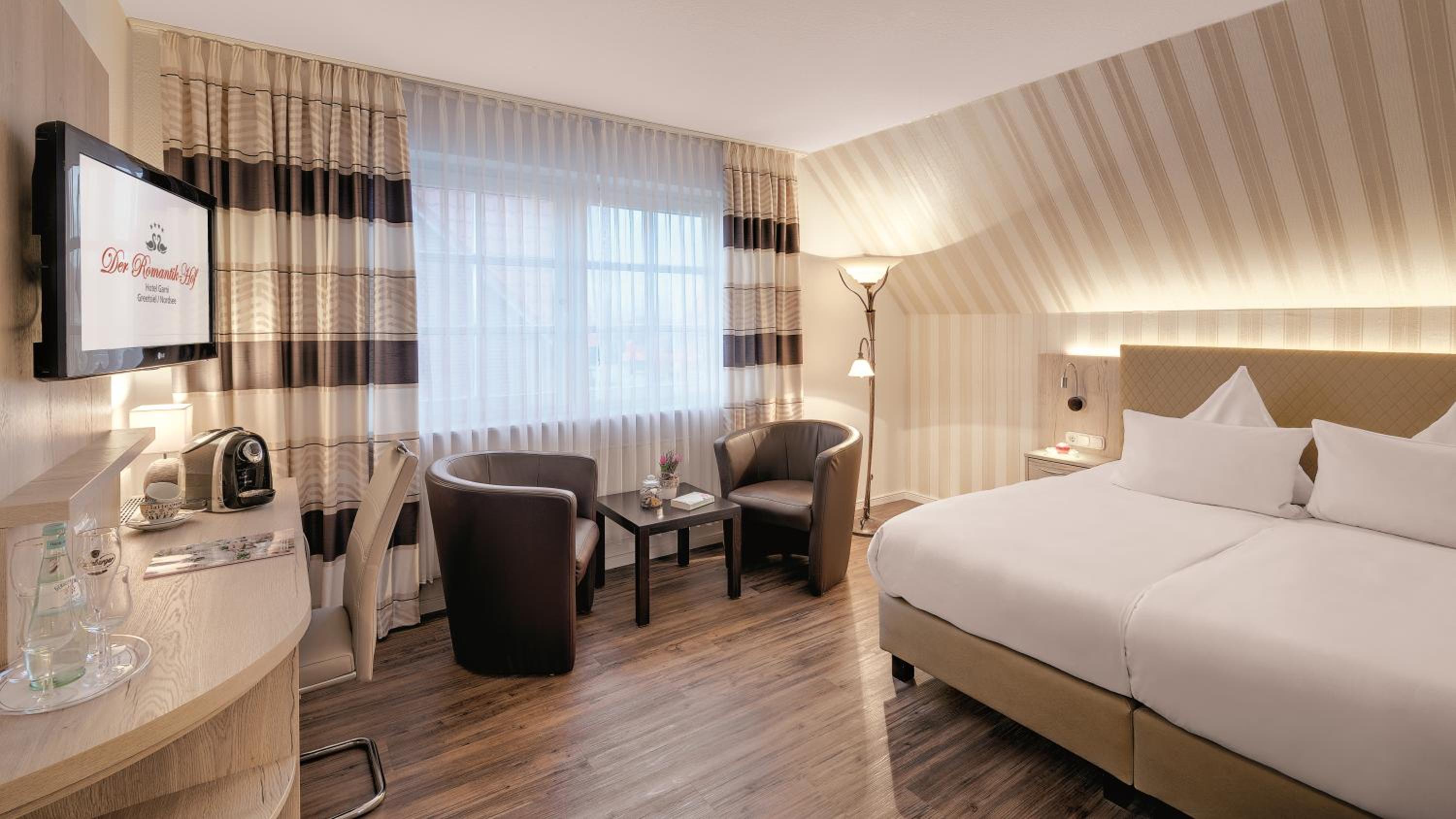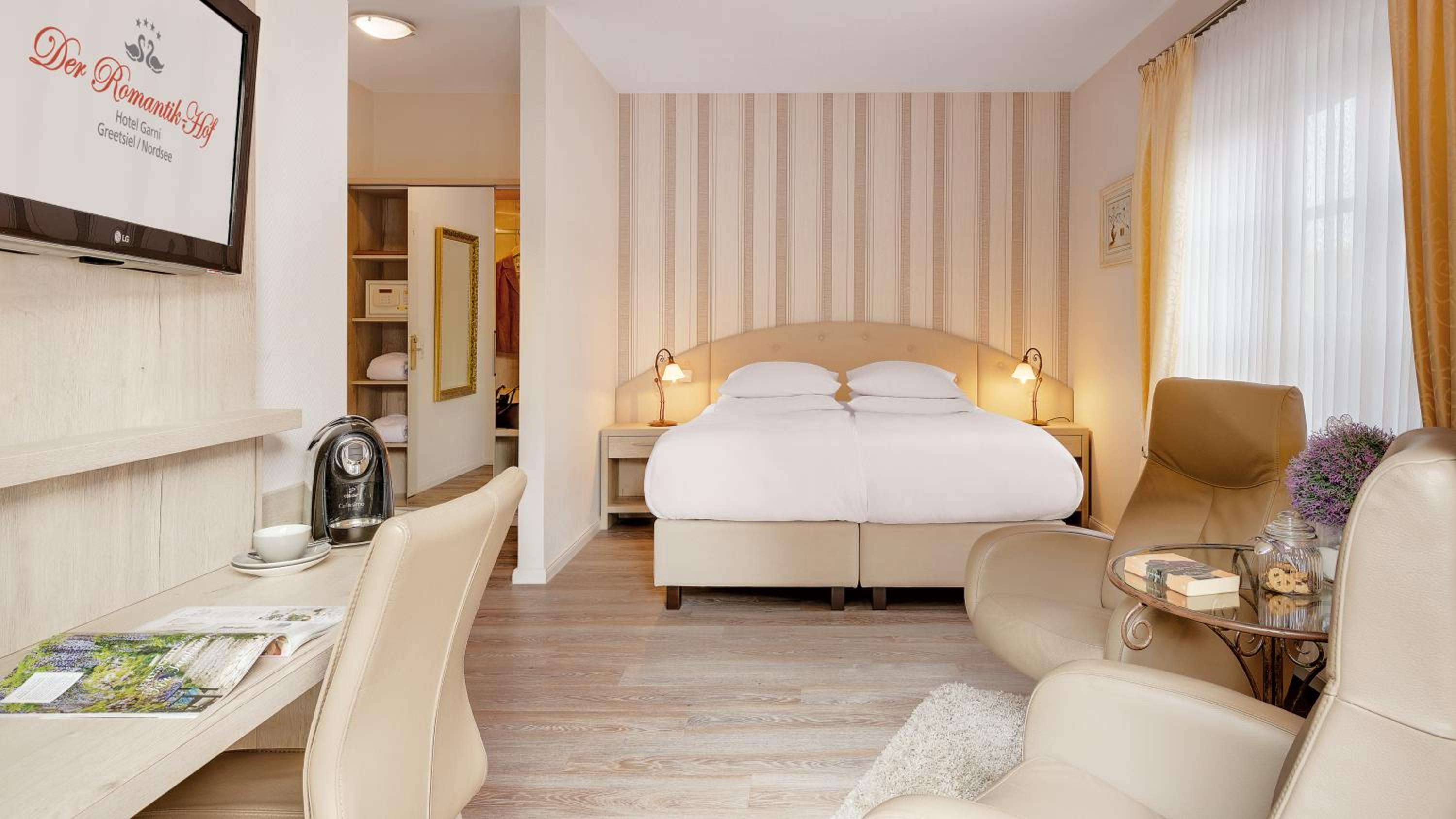 Indulge in comfort and style at Romantik-Hof, where classic and modern rooms await with top-notch amenities like a flat-screen TV, coffee machine, and plush bathrobes.