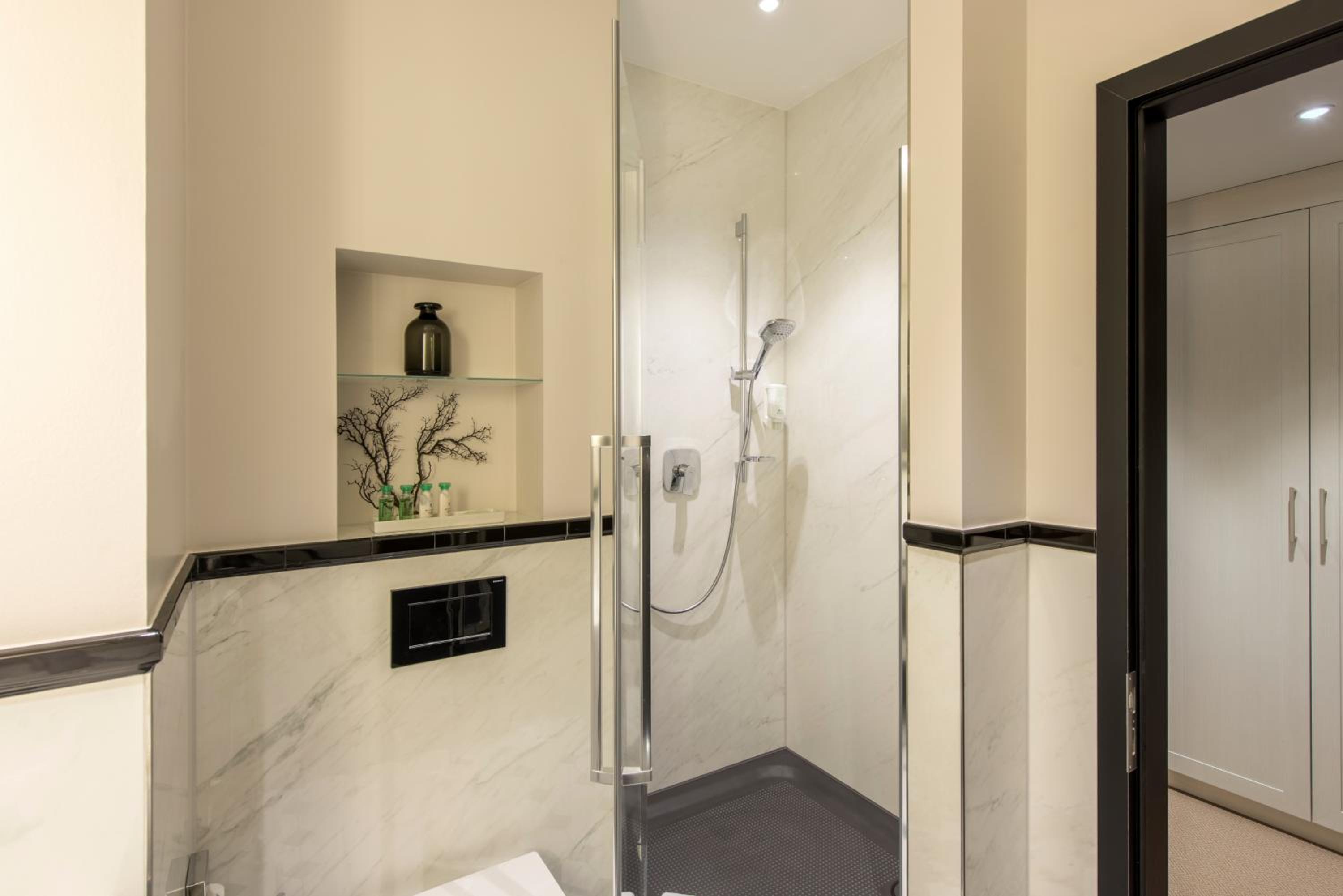 Experience classic and contemporary designed rooms with black-and-white bathrooms. Opt for a room with a rooftop terrace or balcony for a touch of luxury. Some bathrooms even offer natural daylight for a refreshing experience.