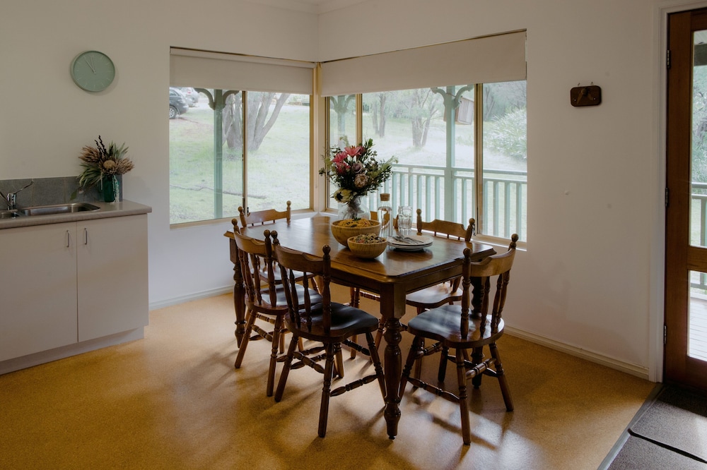 We spent three nights here - four adults and four children. We had the whole of one of the cabins which was brilliant as we could be separate or together. The kids loved the playground and we all loved the wildlife - tame kookaburras, tame possums, kangaroos. It was very peaceful and we all said we would come back. A beautiful sanctuary in amongst the trees. It had everything we needed.