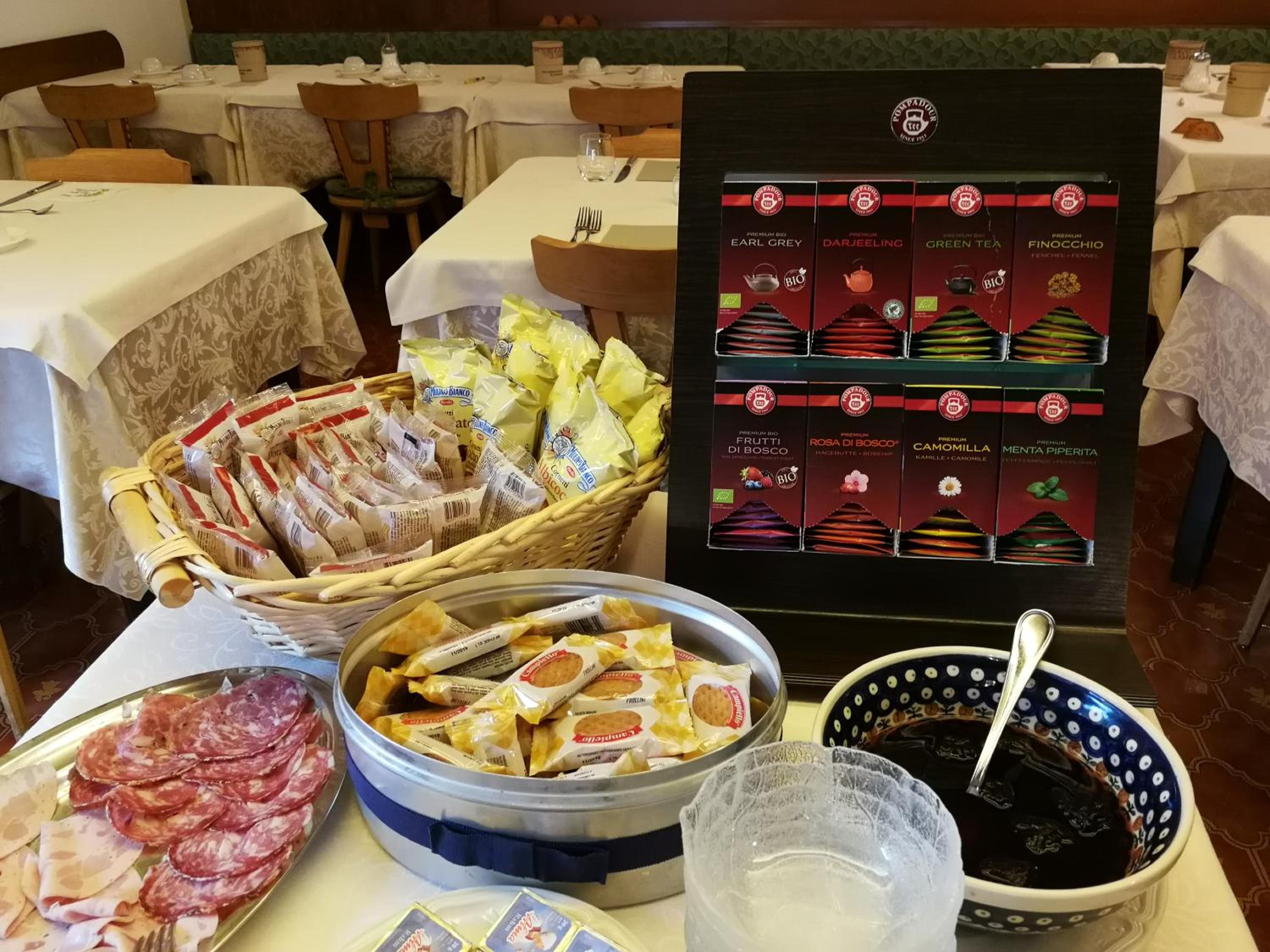 Frühstück für Liebhaber des sùßen Geschmacks. Es gab frischen Kuchen. Es gibt einen Fahrstuhl.