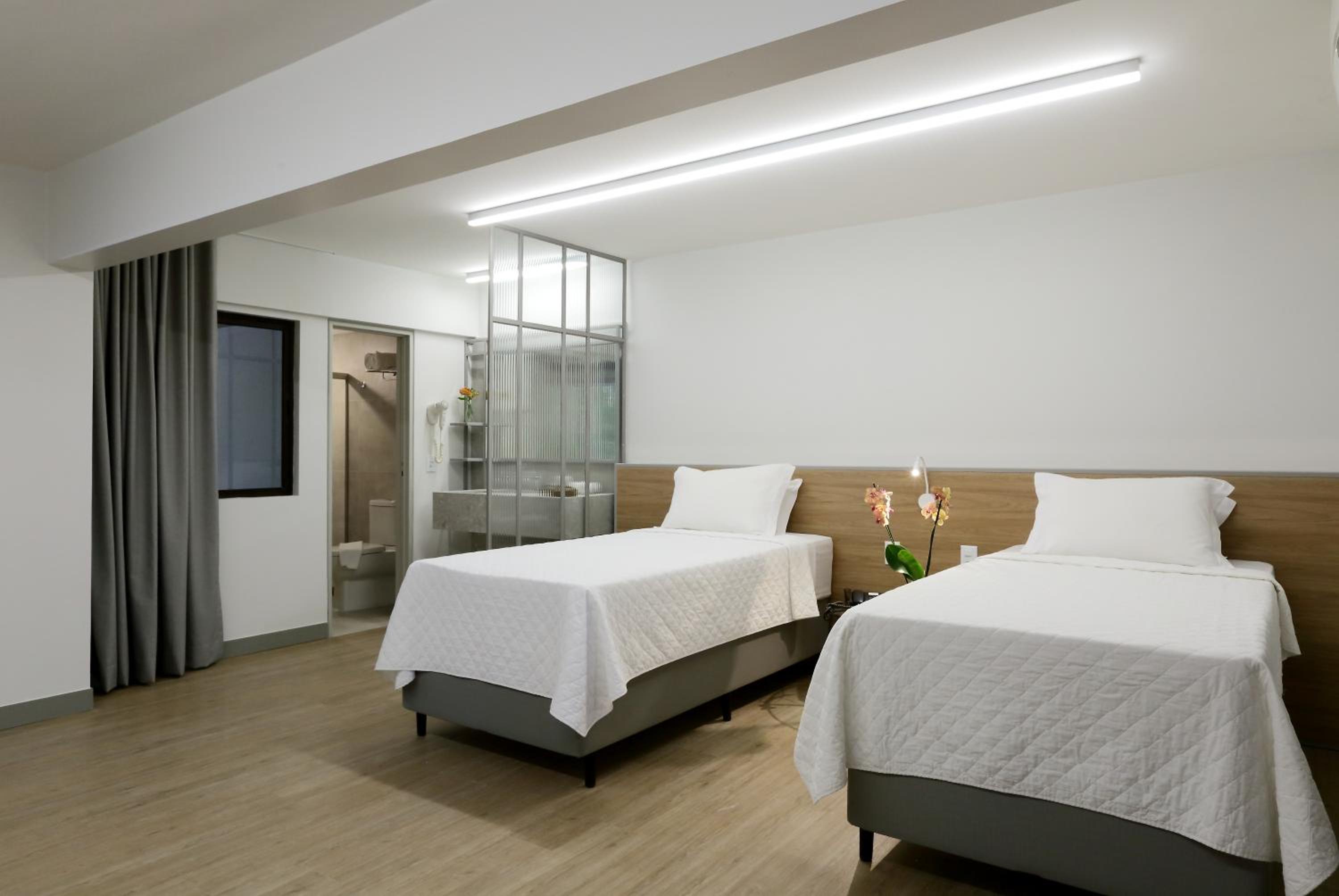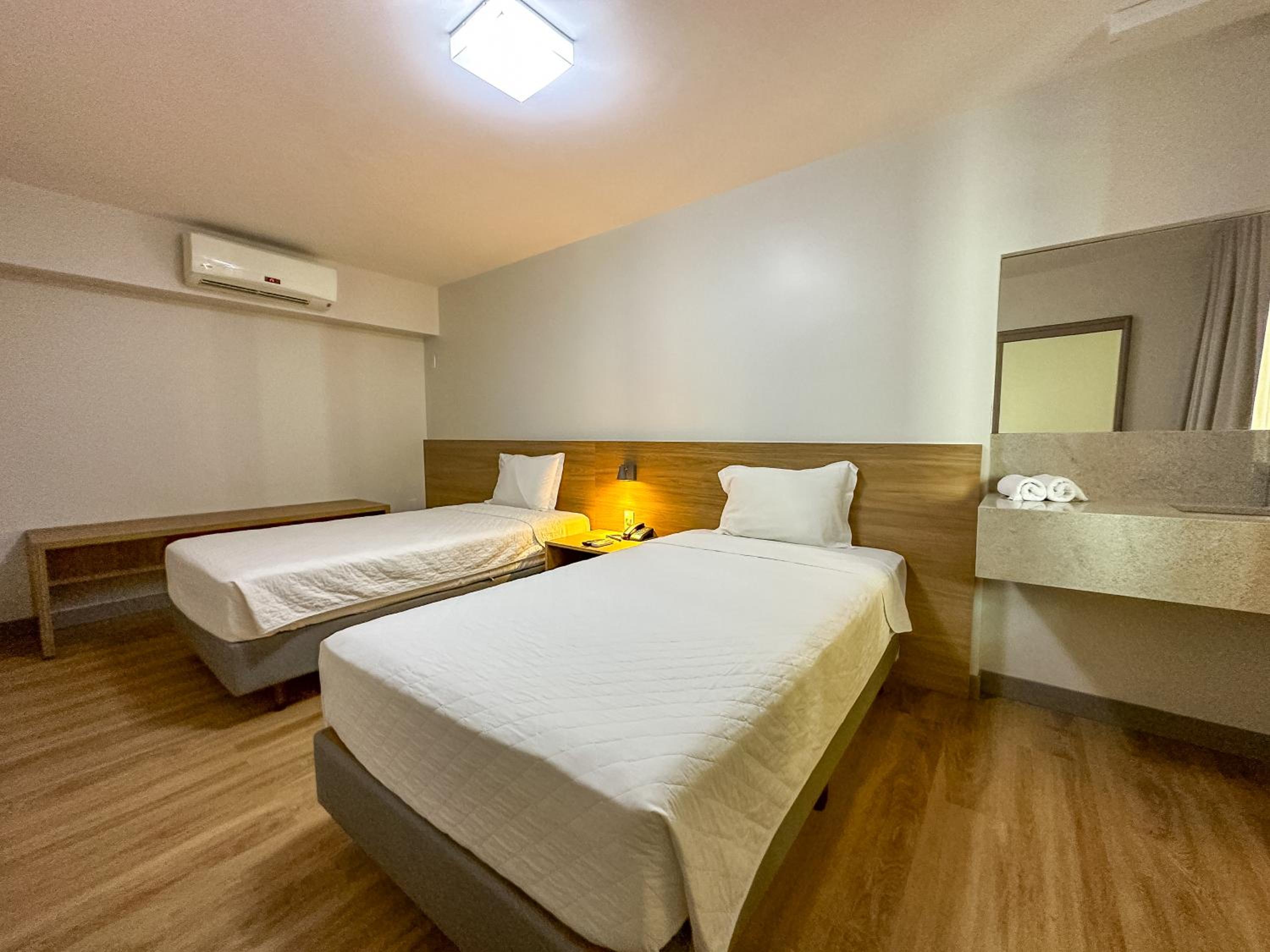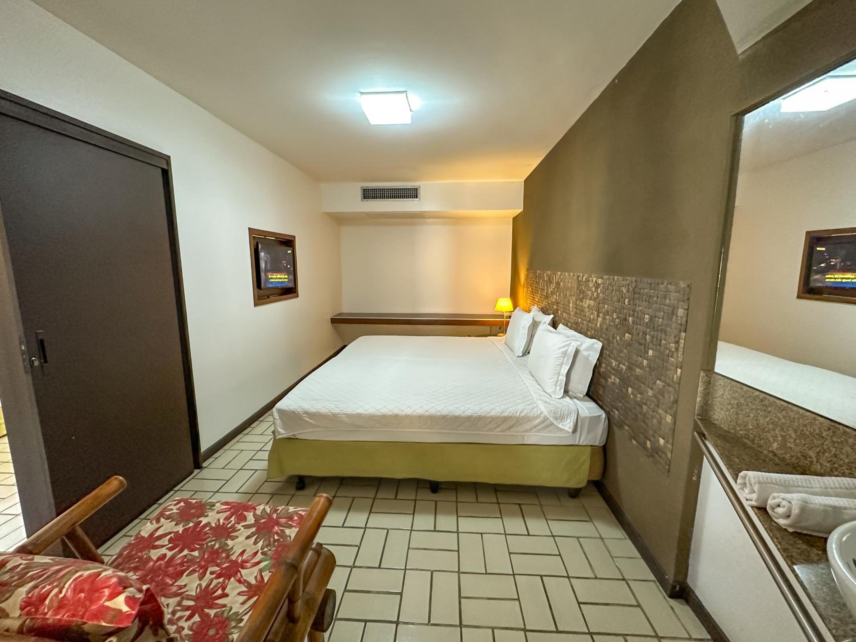 Quarto amplo, ar condicionado perfeito, ducha ótima, com muita pressão, limpeza , e localização otima