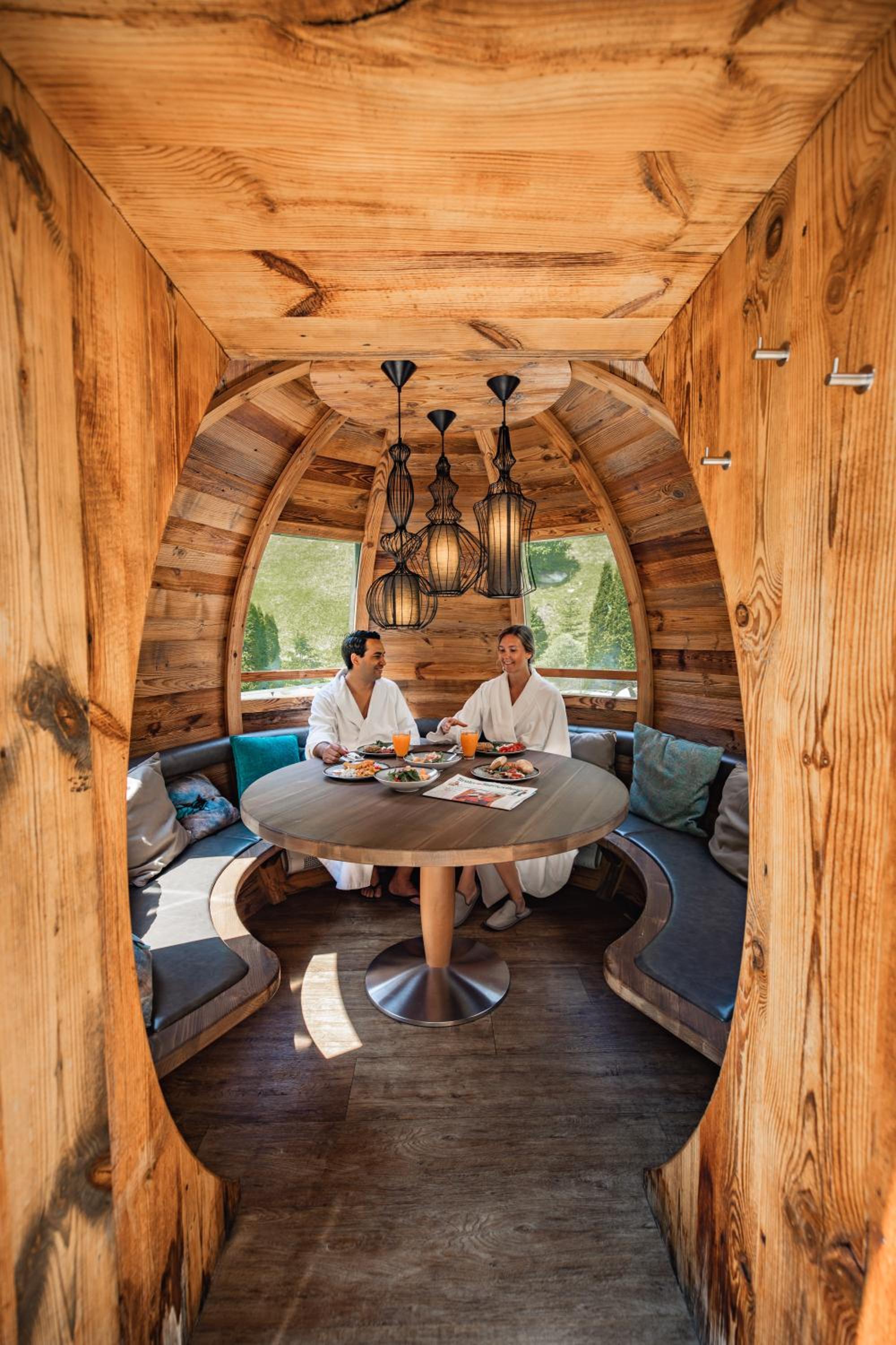 Bardzo ładny hotel z ciekawą i nowoczesną architekturą oraz lokalizacją wśród natury, tuż obok szumiącego potoku. Jedzenie bardzo dobre – na kolacji ciekawe i smaczne dania, duży wybór serów i warzyw. Śniadania również na plus, szczególnie świeżo robione jajka i smaczne, świeże pieczywo.