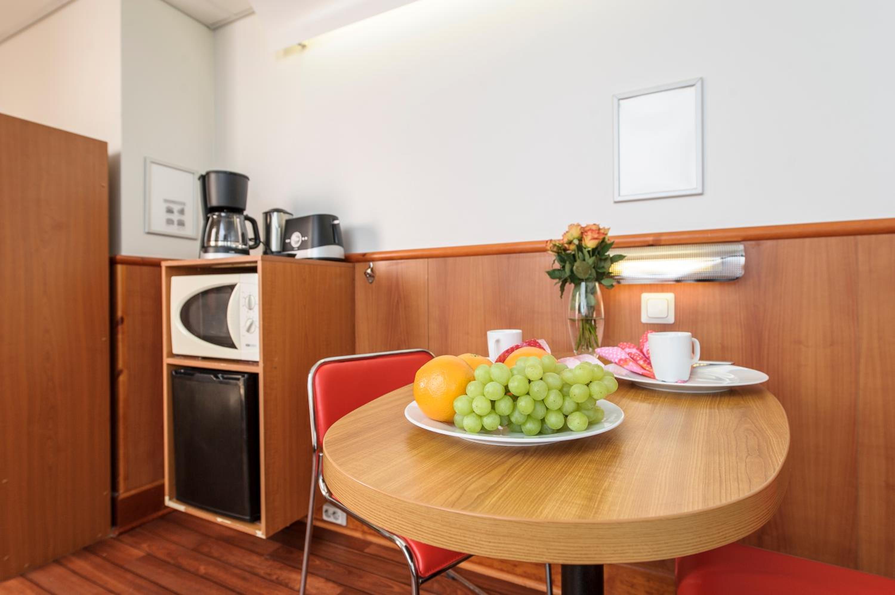 Näistä kolmesta asiasta huolimatta, hotelli siisti ja kaikki käyttötavarat löytyivät huoneesta, kuten pienijääkaappi, mikro, lautasia, jne.