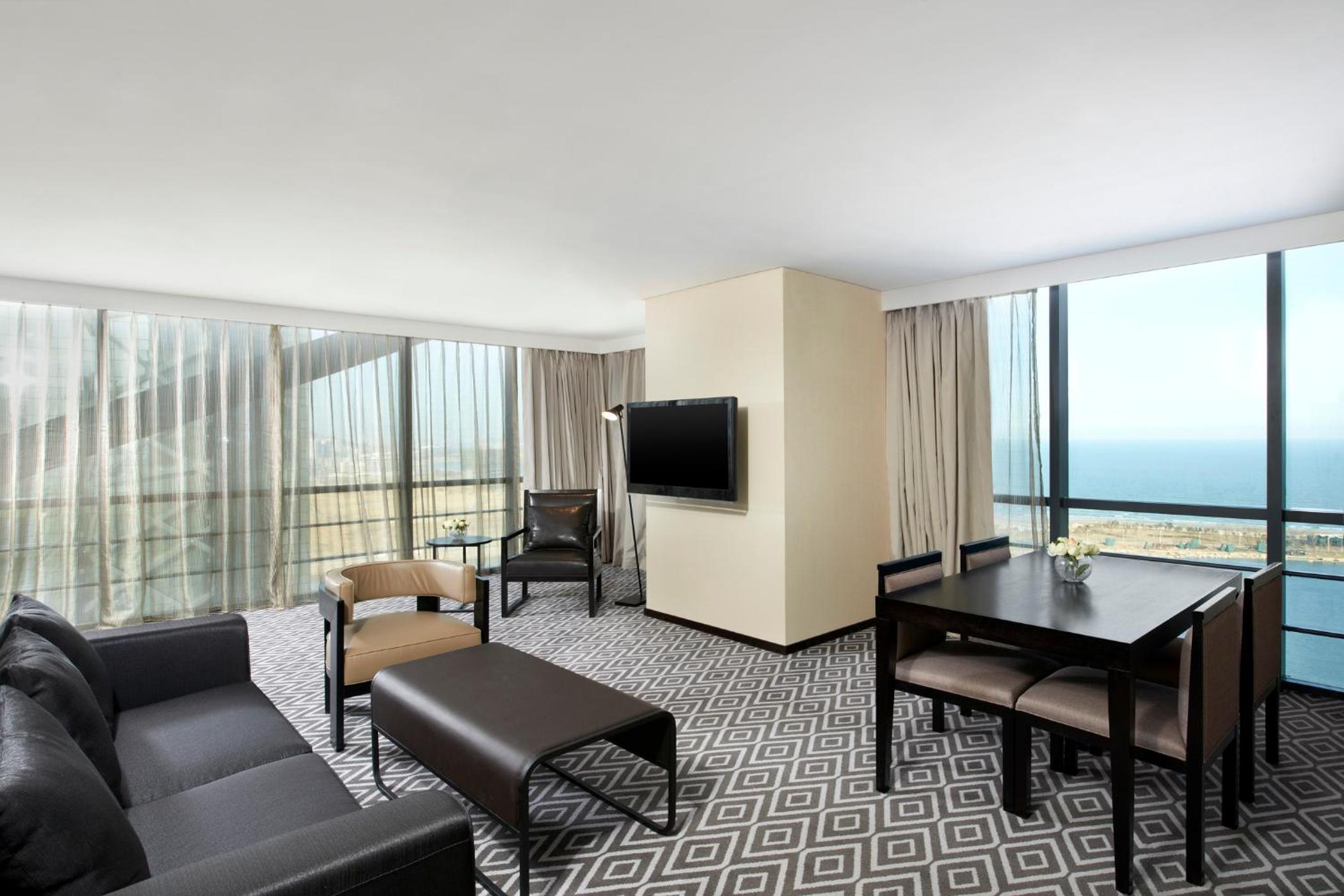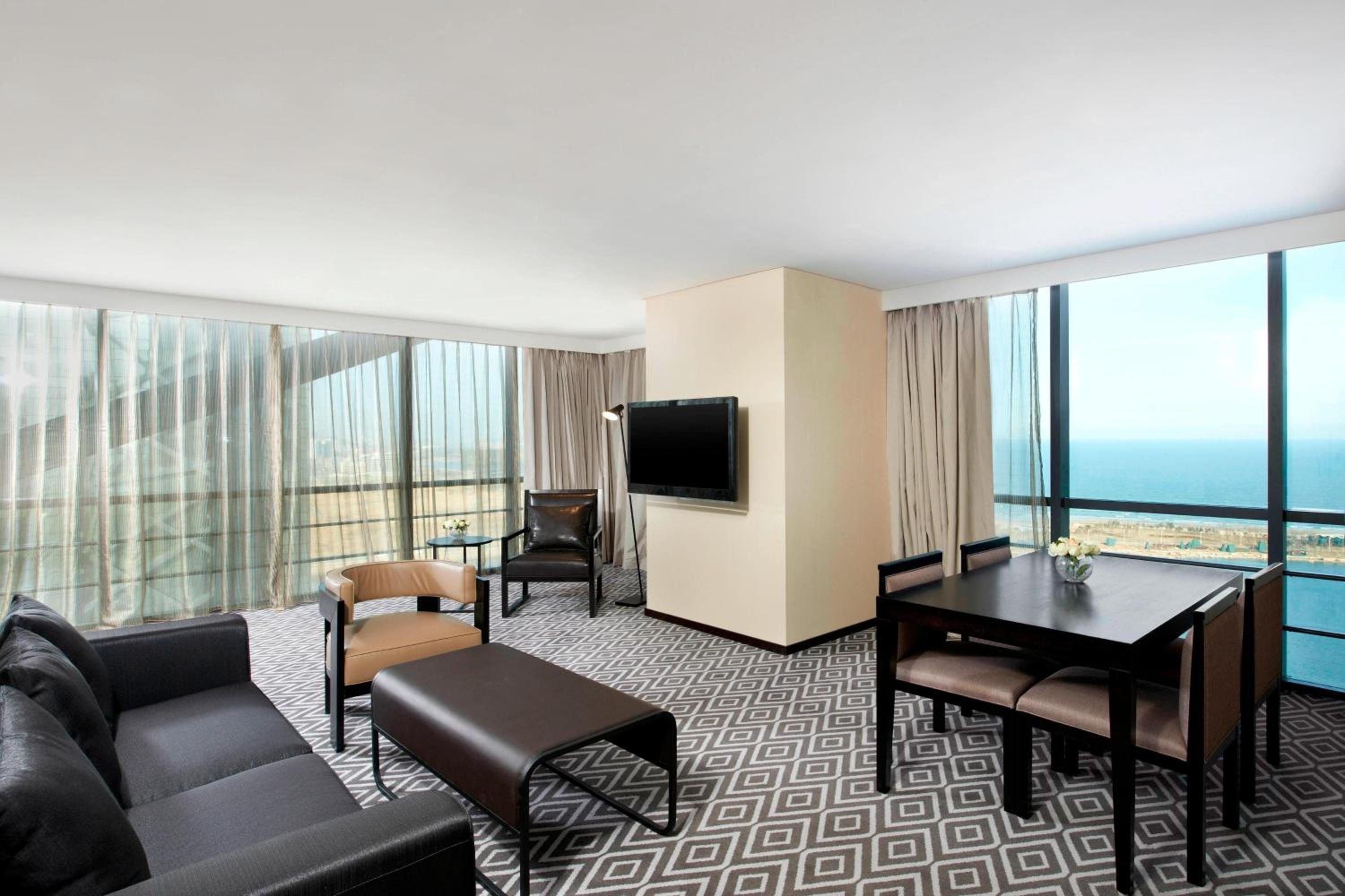 Experience spacious rooms elegantly decorated in soothing colors. Each room features the signature Four Comfort Bed with a pillow menu, floor-to-ceiling windows with city or sea views, and a generous working area. Relax in bathrobes and slippers provided in the bathroom.