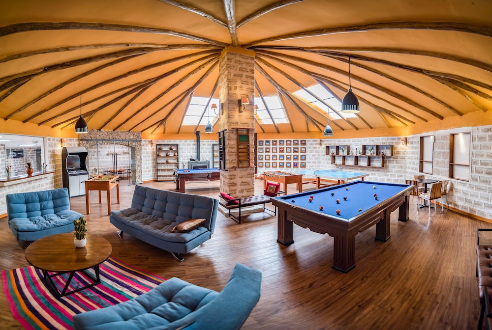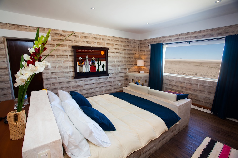 This was a great place to stay for us after a day on the salt flats before we ventured further into the Bolivian desert. Overall, my friends and I really enjoyed this hotel. Great views over the salt flats, comfy rooms, nice atmosphere. We loved the hot tub though we wished the temperature had been a bit hotter. The dinner and breakfast buffets had very nice selection of food and great friendly service. The bar was nice. Beds comfortable and slept well. Only recommendation is that, since you cannot flush toilet paper down the toilet that they install trash cans next to the toilet with a top on them, as I saw elsewhere in Bolivia. That would help tremendously.