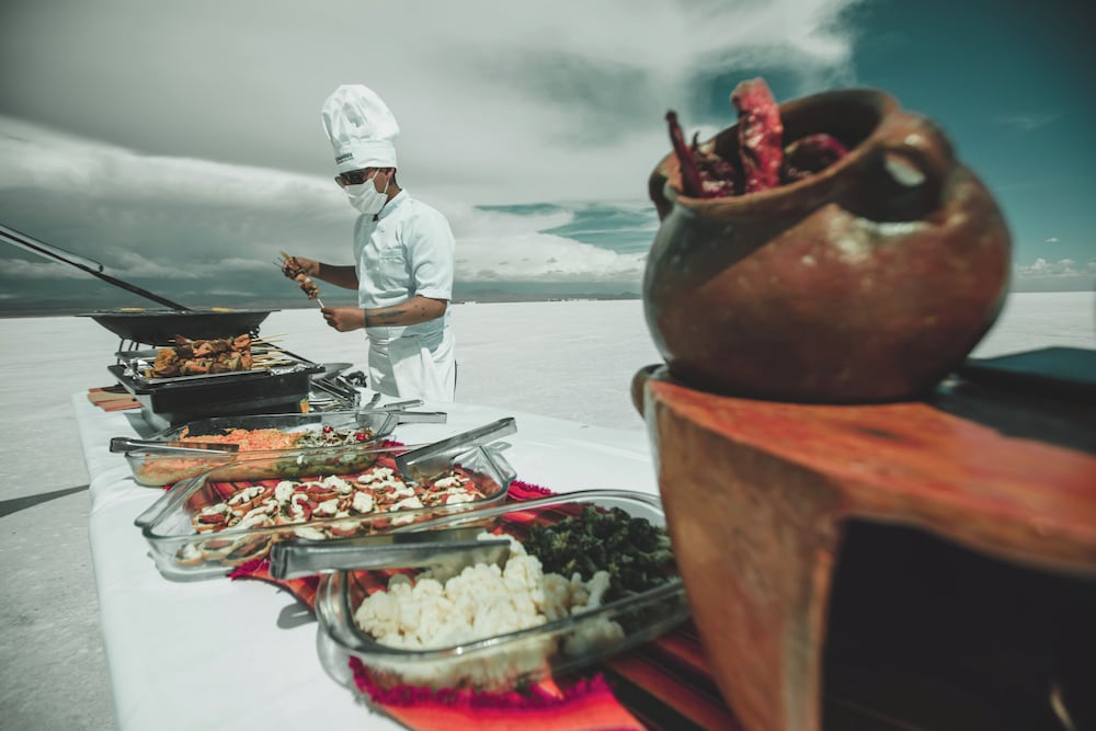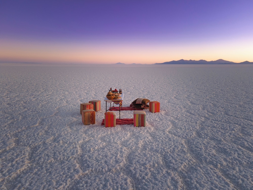 Staying at Hotel Luna Salada was honestly one of the most incredible and unforgettable experiences ever, it’s like sleeping in the middle of another planet, surrounded by nothing but salt and sky. The whole hotel is made of salt blocks (yes, even the floors and walls!), and everything feels super cozy and magical, especially at sunrise or sunset when the light hits the flats. Seriously, pay extra for the Dome with the salt flat view , waking up to that massive white landscape glowing pink in the morning is 100% worth it and feels like a movie. The food was delicious (highly recommend the quinoa risotto and coca tea), the spa was such a nice surprise, and just chilling by the fireplace with a book or some music while looking out at the flats was peak peace. Bring layers because it gets cold, and try to go during the rainy season if you want to see that mirror effect. It’s not just a hotel stay, it’s a once-in-a-lifetime moment you’ll never forget.