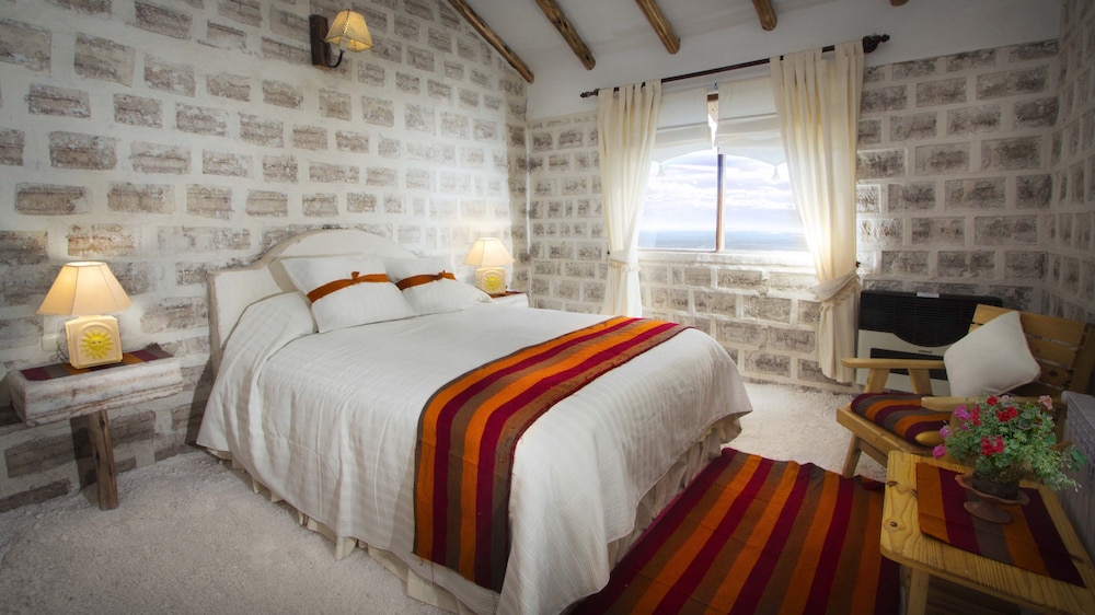 Things to know: Pay a little extra for a room facing the Salar, the view is worth it. Water is expensive here, buy some 3 litre bottles in town before you arrive so you can avoid buying extra water, because you will ned it. No elevator and long corridors with many stairs, handicapped people beware, make sure to request a ground floor room in advance.
