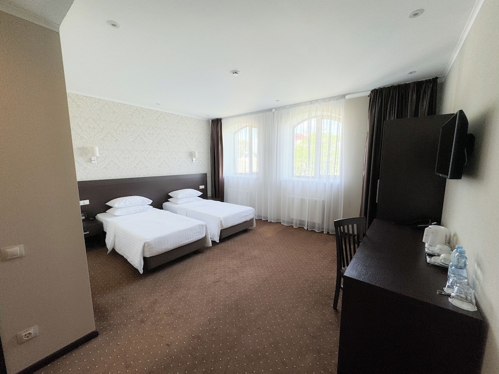 Stayed here for one night when my flight was cancelled. I arrived very stressed due to my flight being cancelled but all that stress was eradicated straight away. This is a modern, comfortable and luxurious feeling hotel albeit at an extremely affordable price. The staff spoke perfect English and check in was easy. The rooms are extremely comfortable as was the bed. The hotel has quite a few restaurants attached to it so you don’t have to go far for a good meal particularly in bad weather. I’d recommend this hotel to anyone who wants a central location in Odessa to stay in. Five stars for an extremely affordable price.