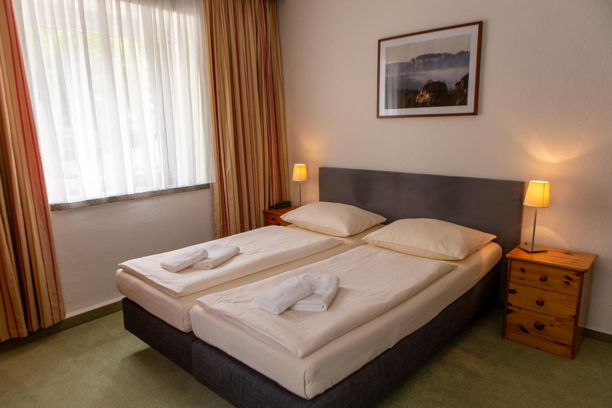 Start your day with a delicious buffet breakfast in the breakfast room, unwind with a drink at the bar, or bask in the sun on our garden terrace. Explore the picturesque countryside with hiking and cycling trails, visit the historic Königstein Fortress and the iconic Bastei Bridge, all just a short distance away.