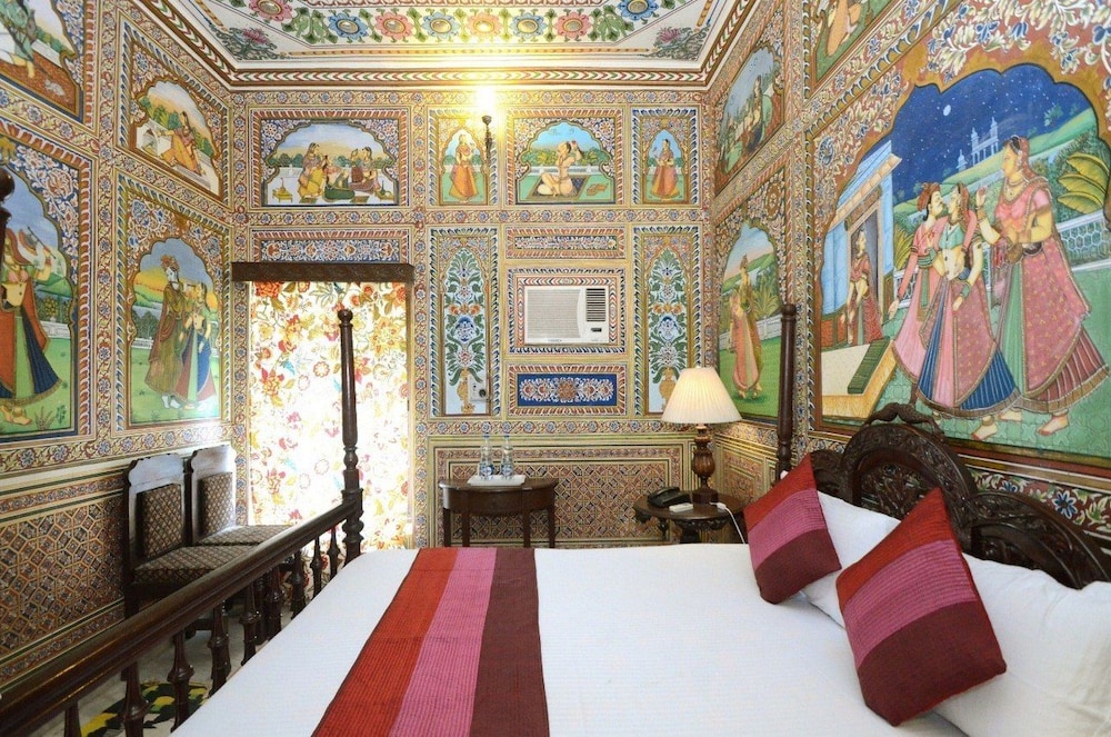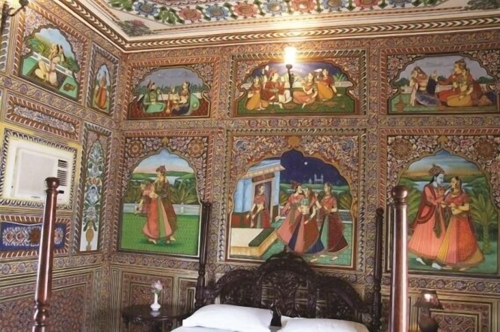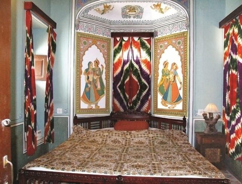 We enjoyed our stay in the Hotel. We had a four poster bed in the room we stayed in and it was a lovely spacious room although not all of them were as big. The staff made us feel very welcome. The hotel was mainly for one and two night stays as the town is small and didn't take long to see the sights, but we'd booked to stay a week and didn't regret the length of stay. The restaurant served a buffet meal at night to cater for the tours and could have done with a couple more meat free meals (we don't eat meat in India although we're not vegetarians). The Hotel had some lovely painting on the walls.