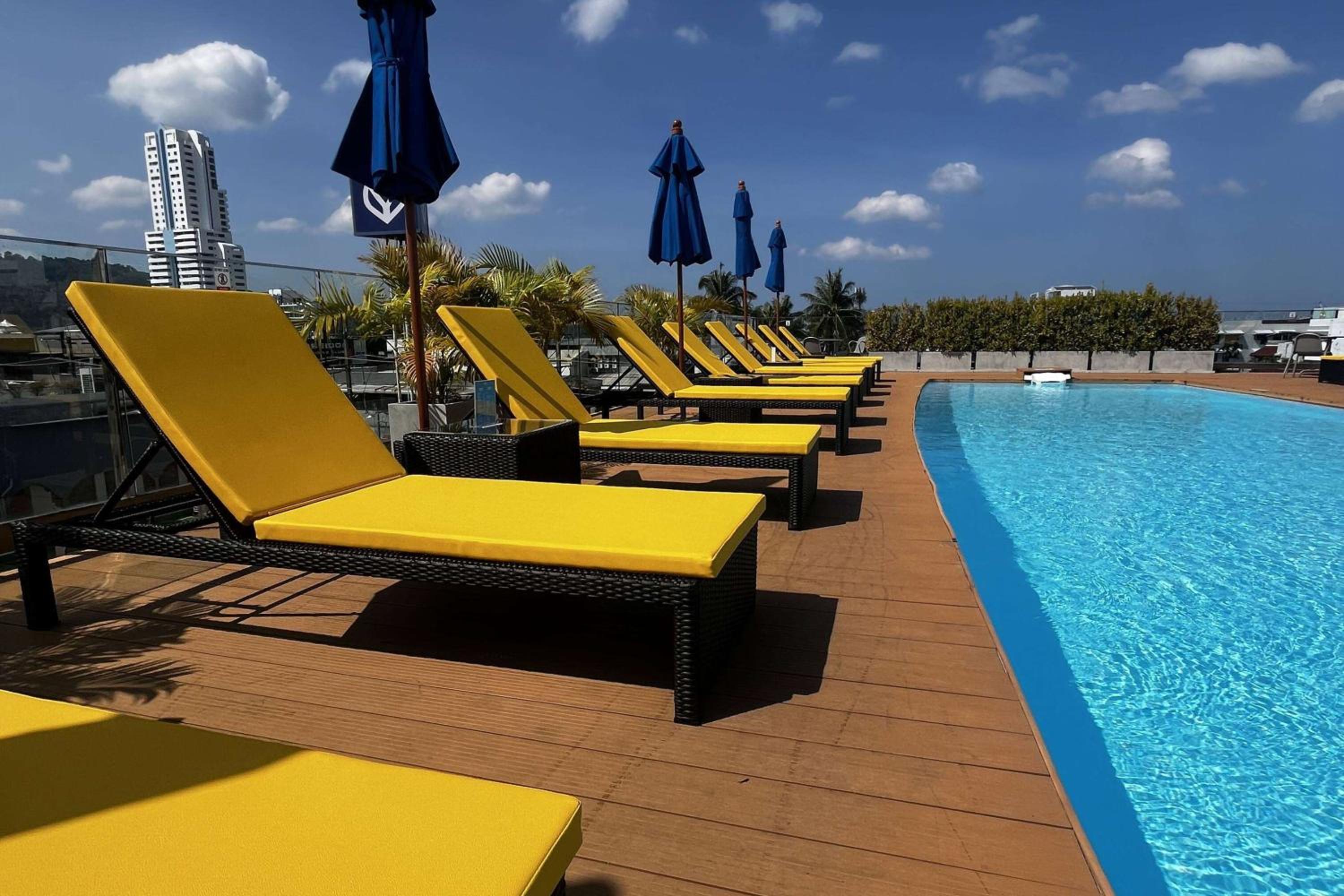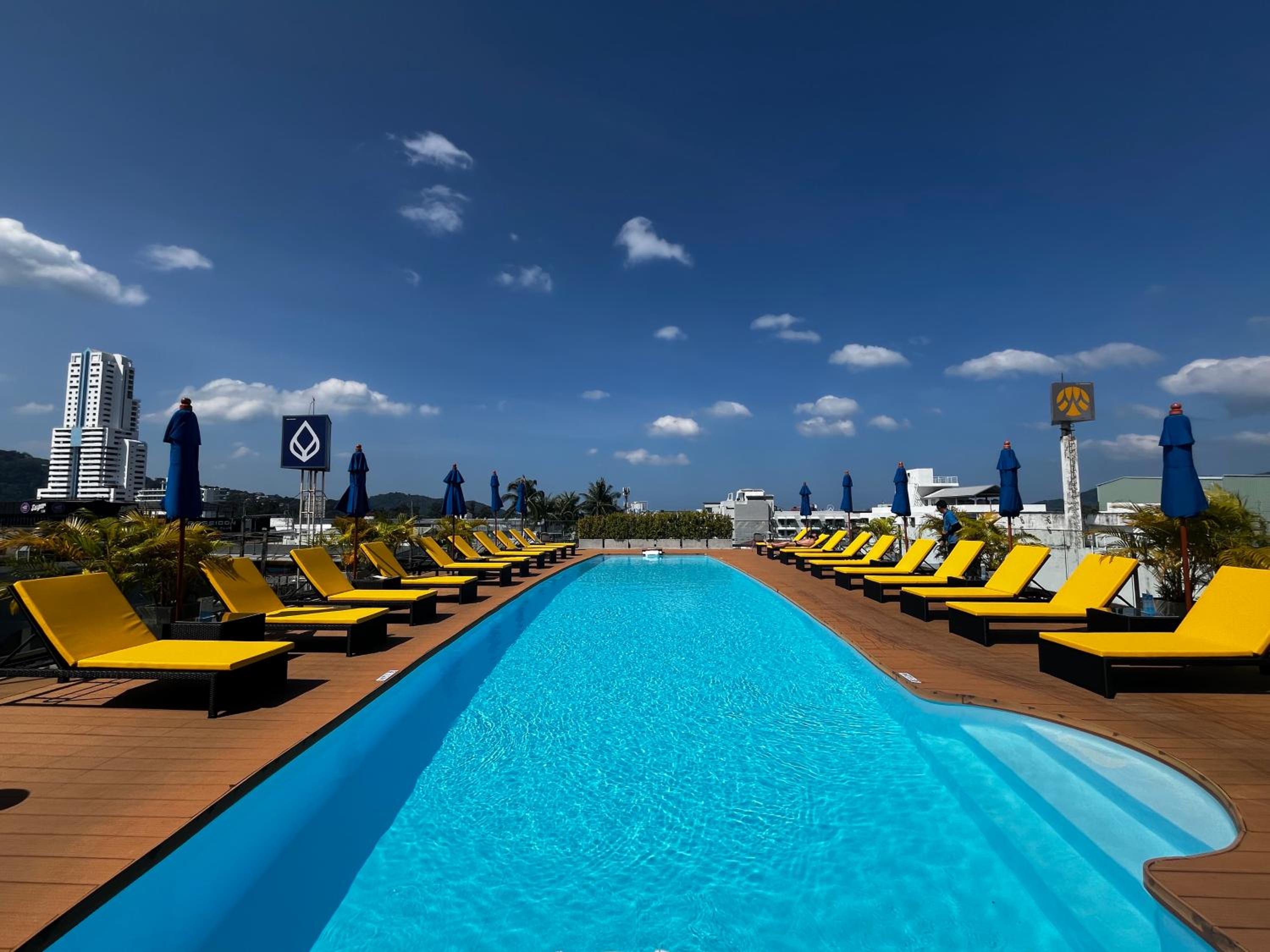 Enjoy a refreshing dip in the rooftop swimming pool while sipping on your favorite drink from the pool-side bar at Days Inn by Wyndham Patong Beach Phuket - SHA Extra Plus.