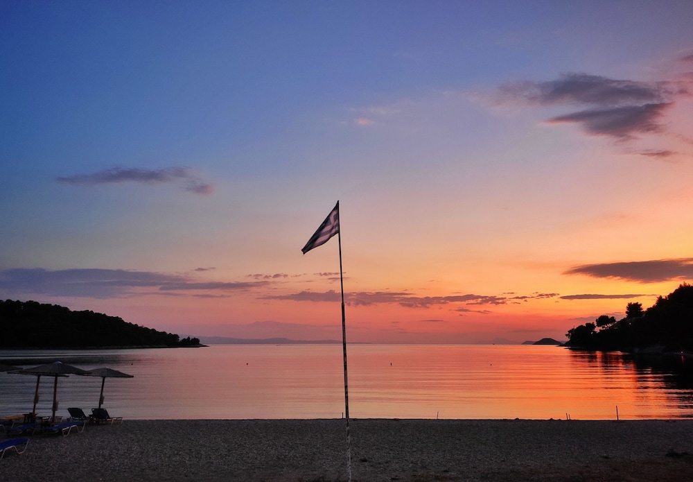 The hotel is situated perfectly to see the sights of Skopelos, 30 minutes drive from the main tourist attractions and less than 100m metres from a bus stop and the beach.